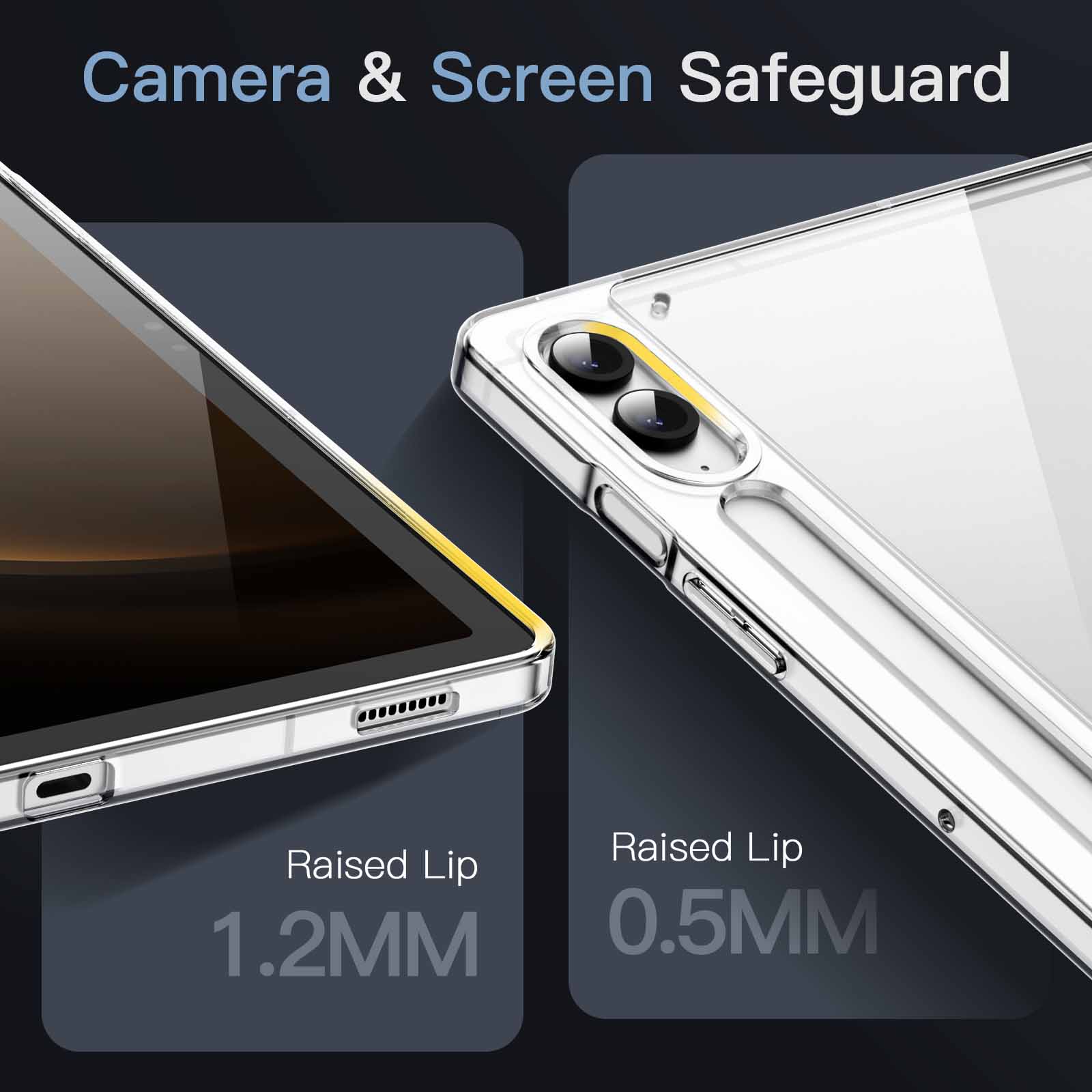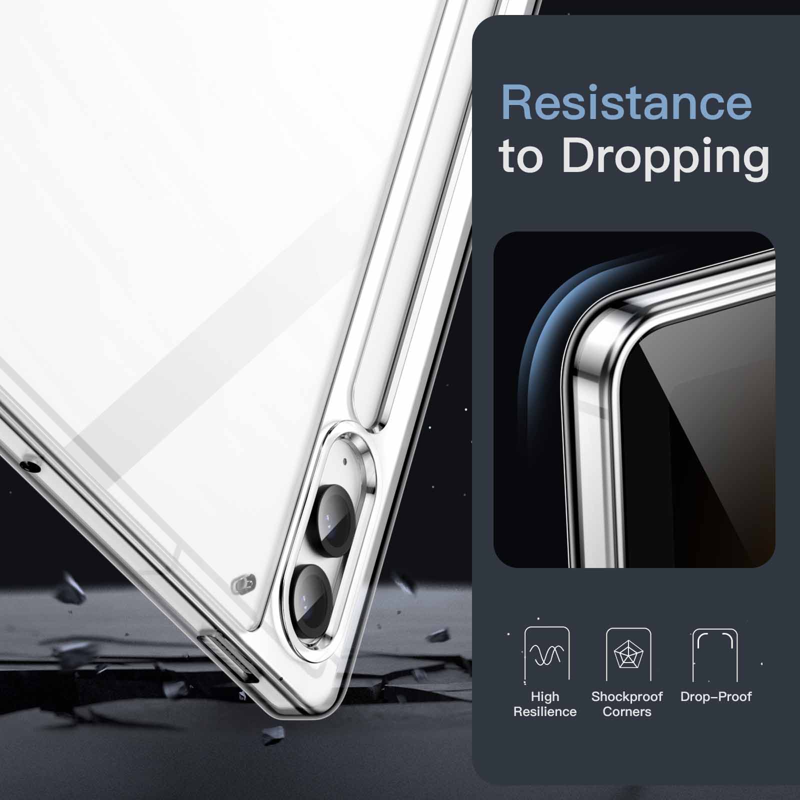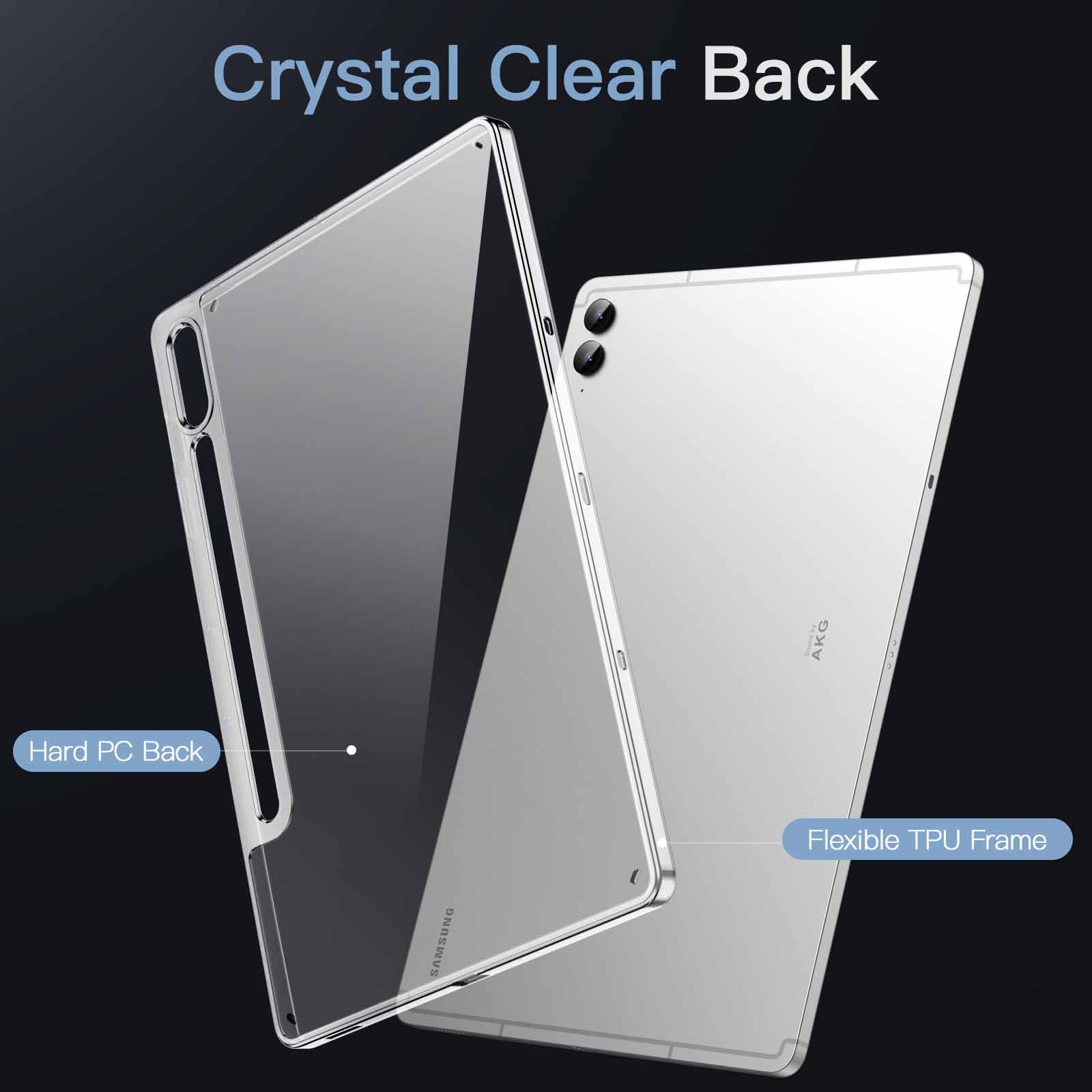 [Hybrid Protection] Built with flexible TPU frame as well as hard PC back, the transparent tablet cover protects your device against daily scratches and shocks