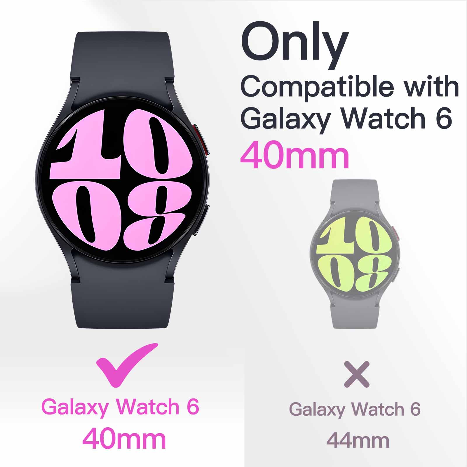 [Perfect Fit] Compatible with Samsung Galaxy Watch 6 40mm. Please check the back bottom of your device to find the Watch Model. Precise cutouts allow you to access all features and buttons easily