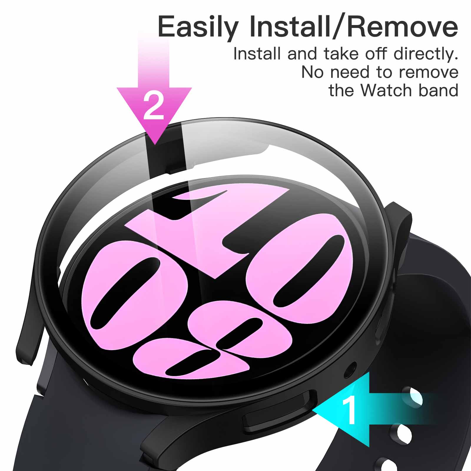 [Effortless Installation] With a snap-on design, you can install the protective case with screen protector directly to your Watch without taking off the watch band