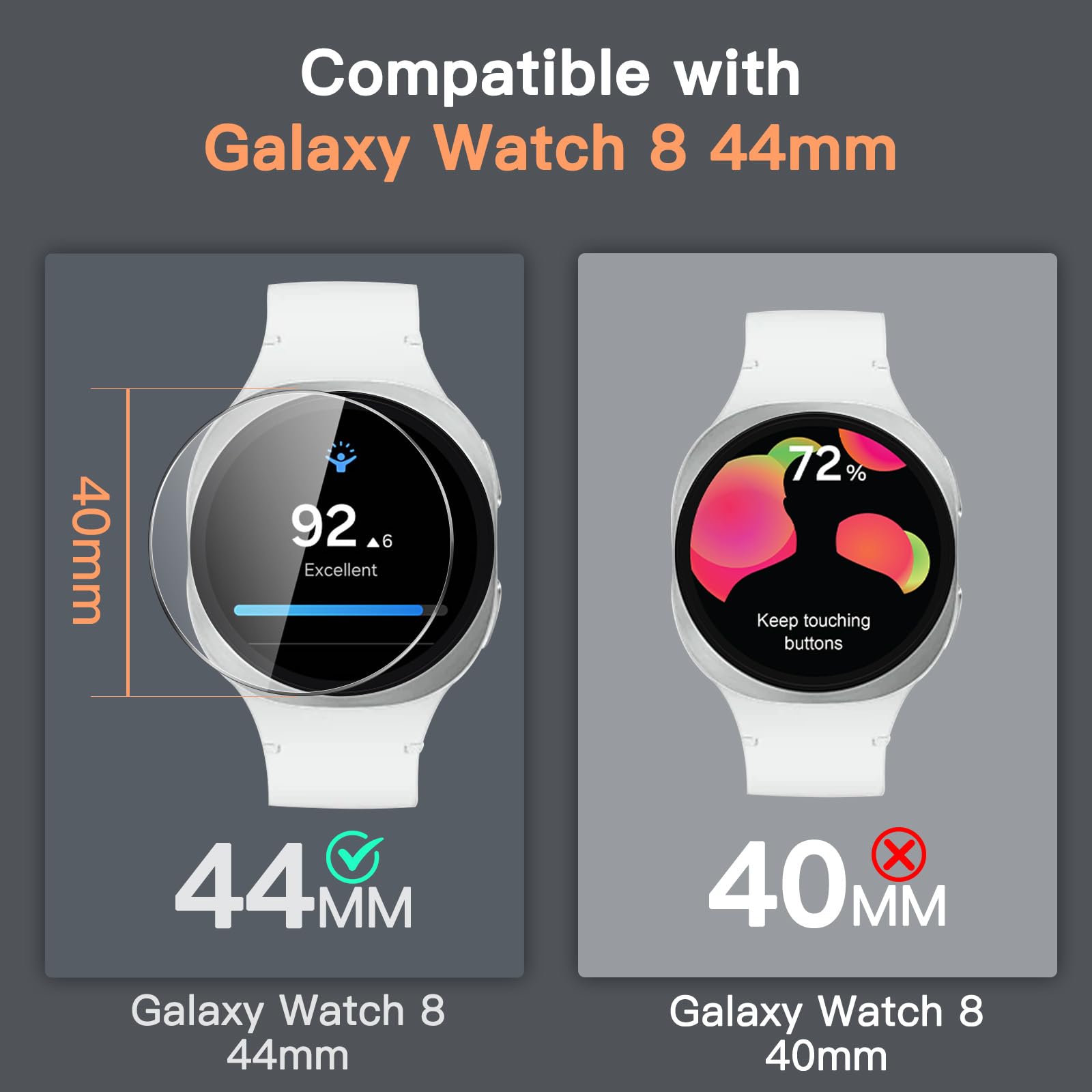 [Compatibility] Exclusively designed for Samsung Galaxy Watch 8 44mm. NOTE: Not for Samsung Galaxy Watch 7/6. Please double check the model of your watch before purchasing