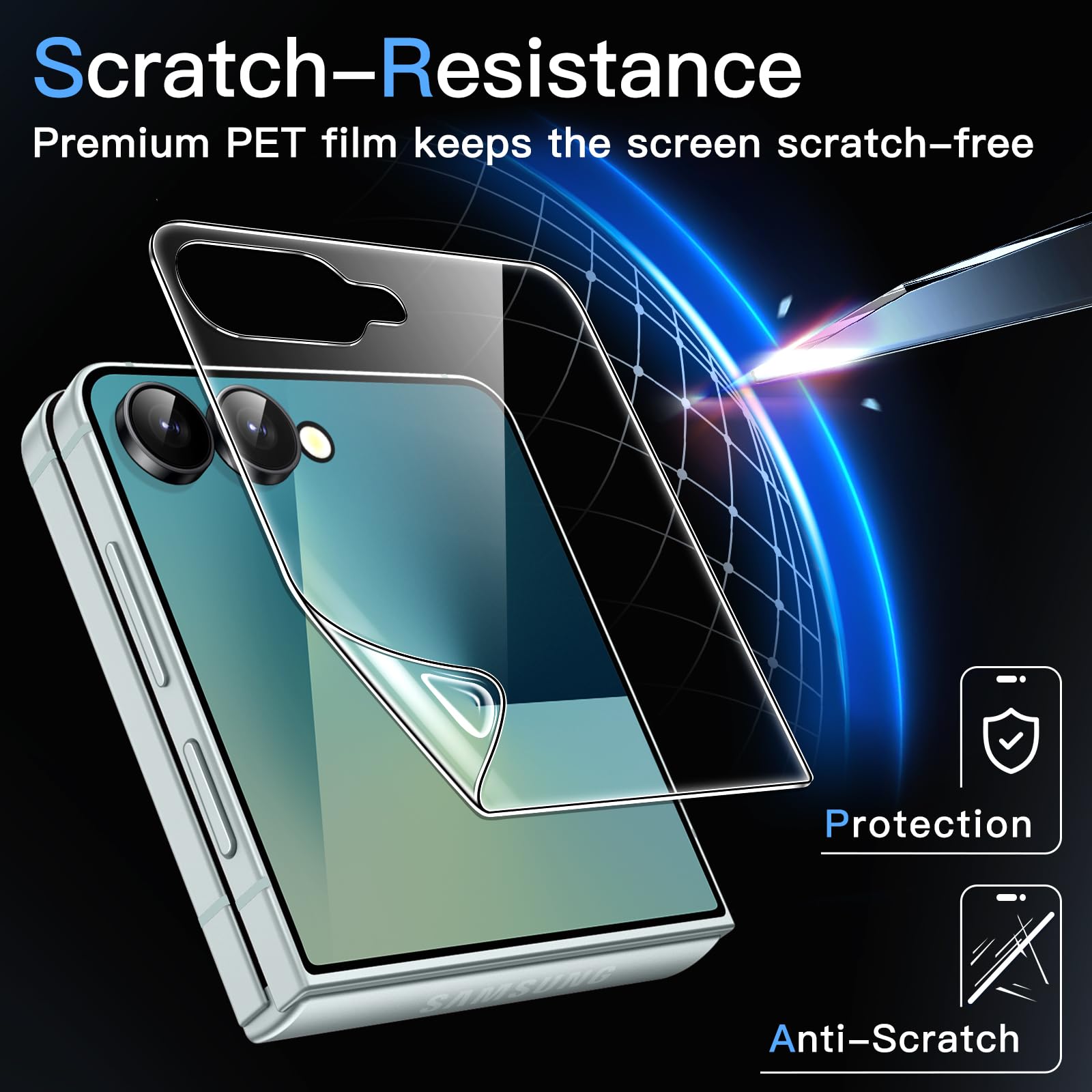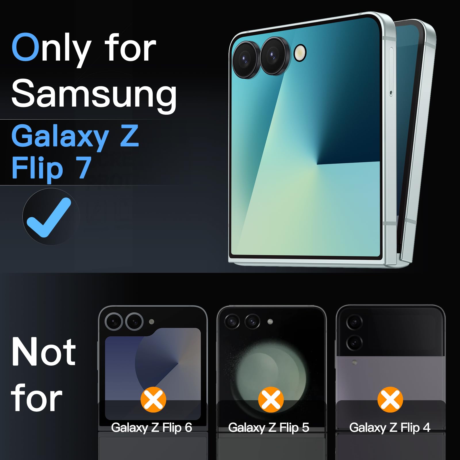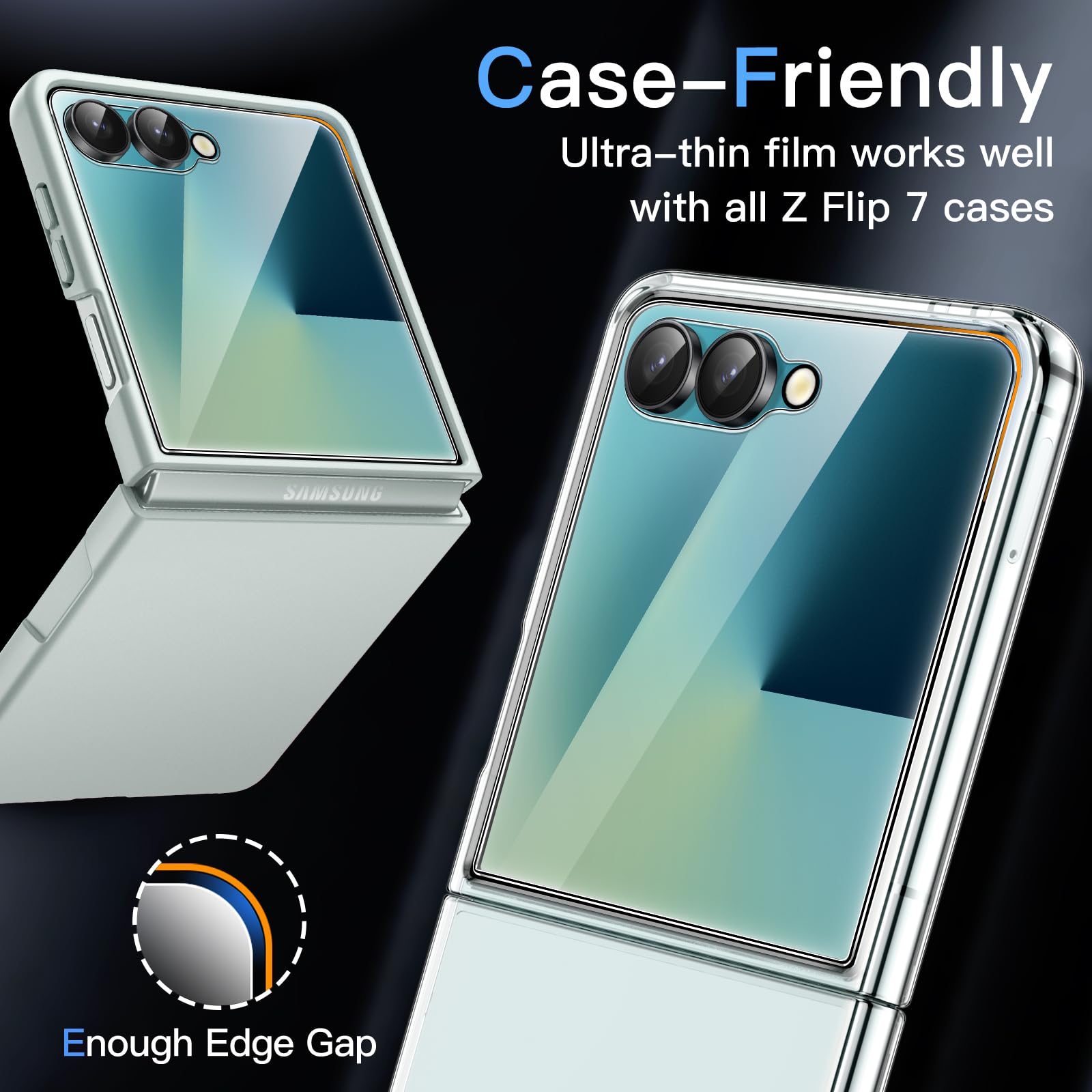 • [Compatibility] Designed for Samsung Galaxy Z Flip 7 2025 for great protection. NOTE: Not for Samsung Galaxy Z Flip 6 / Flip 5. The film is ultra-thin, working well with most phone cases for this phone model