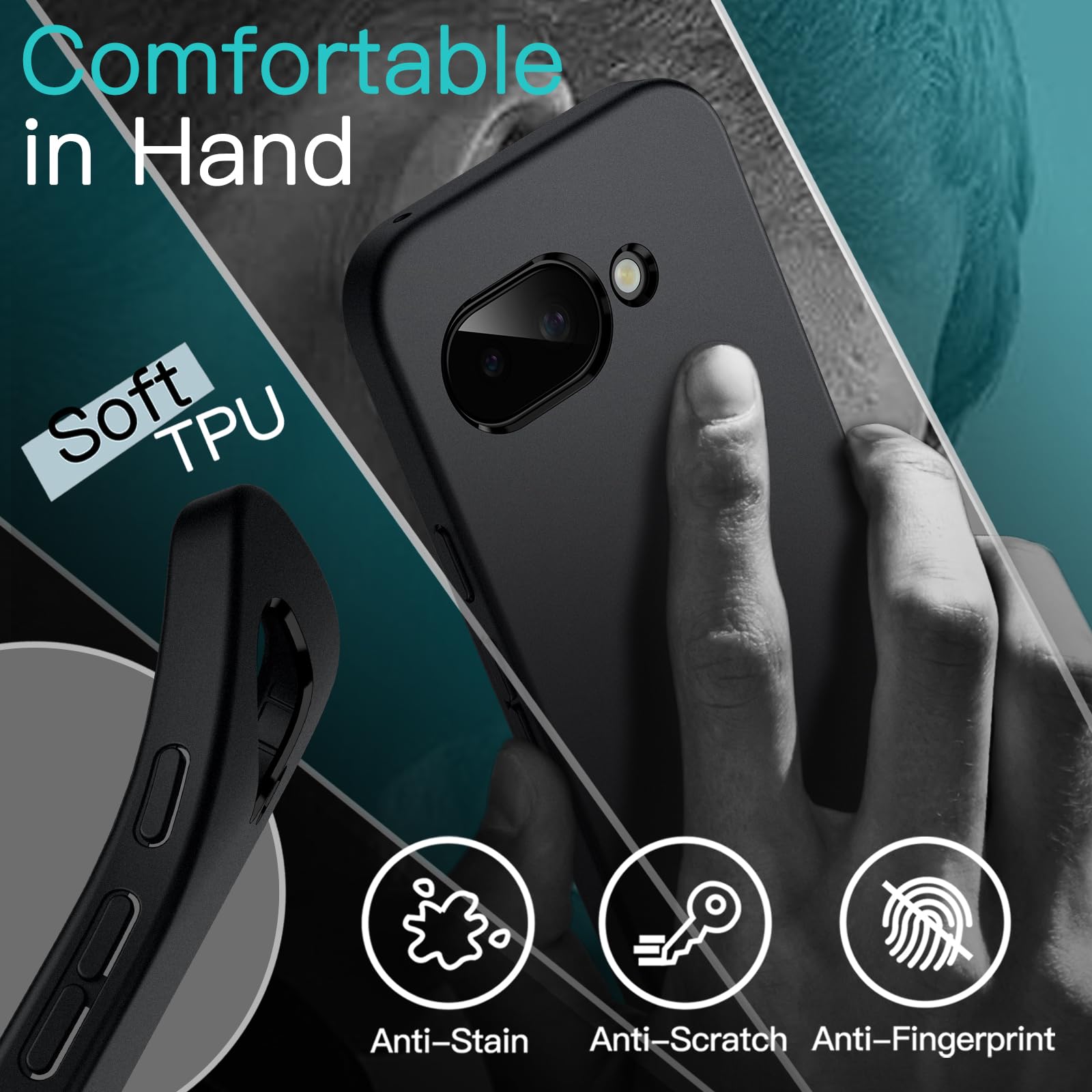 I received my new Pixel 9a recently and fitted this JETech case to protect it. The new Pixel is a little thicker because of the increased battery size. so I wanted a slim case to minimize the thickness. This case does a good job keeping the phone comfortable to hold. The TPU material feels good in the hand. The back is perfectly flat with enough material to protect the very slight bump out from the camera. The cutouts align perfectly. The screen is protected by a protruding edge. so when laying the phone on it is face. the screen is not touching the table surface..It is a great price for a simple phone case that feels great in hand.