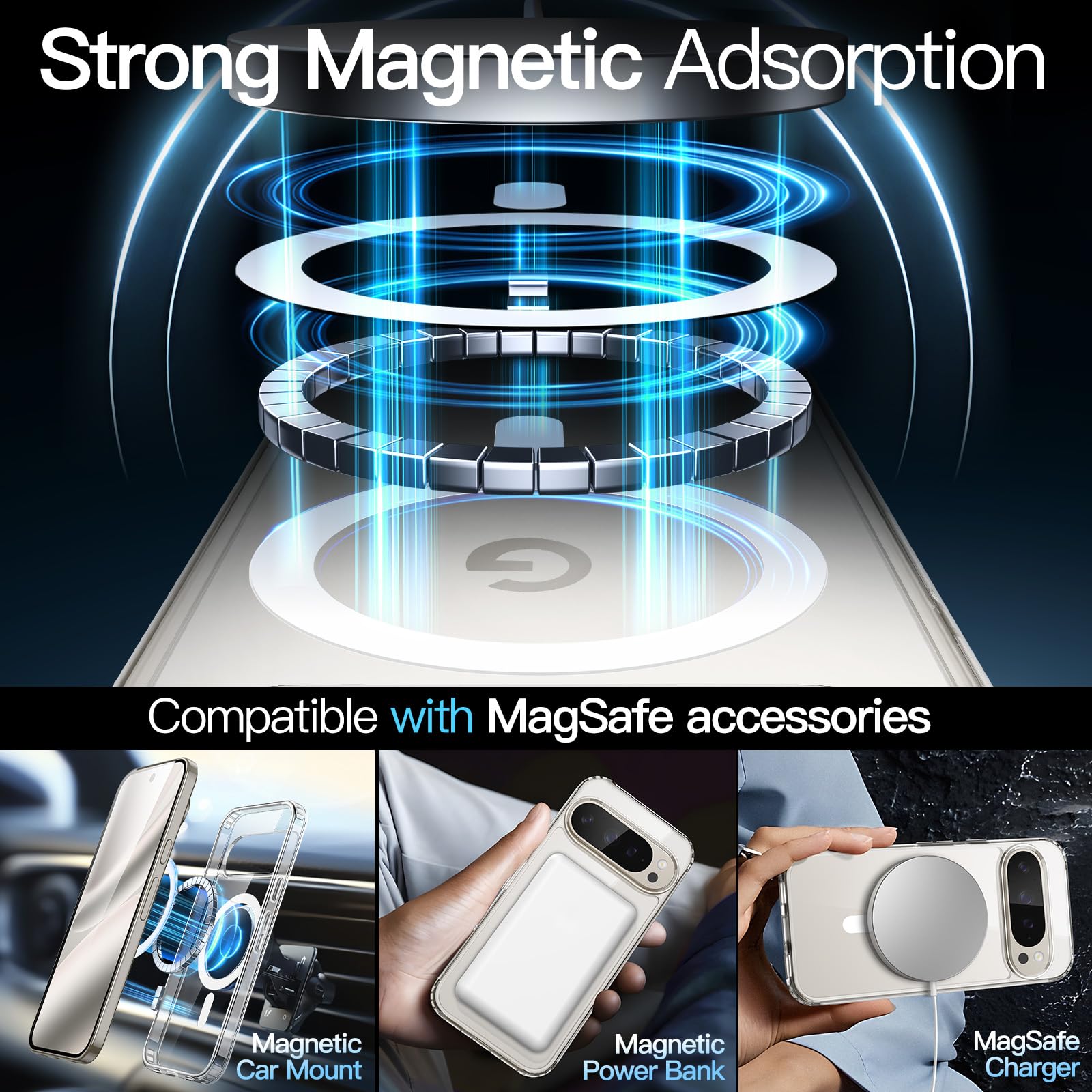 [Compatibility] Exclusively designed for Google Pixel 10/10 Pro 2025. NOTE: Not for Google Pixel 10 Pro XL / Pixel 9 series. With built-in 38 pieces of magnets, the clear case is compatible with MagSafe accessories and Pixelsnap Charger