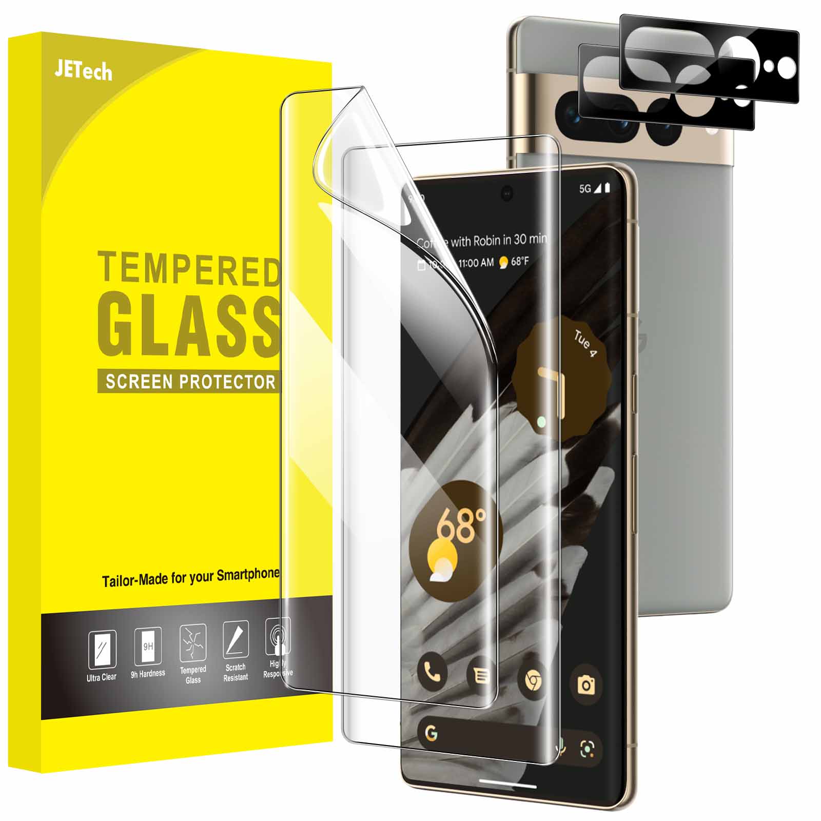 JETech Screen Protector for Google Pixel 7 Pro with Camera Lens Protector, Flexible TPU Film, Fingerprint ID Compatible, HD Clear, Easy Install, 2-Pack Each