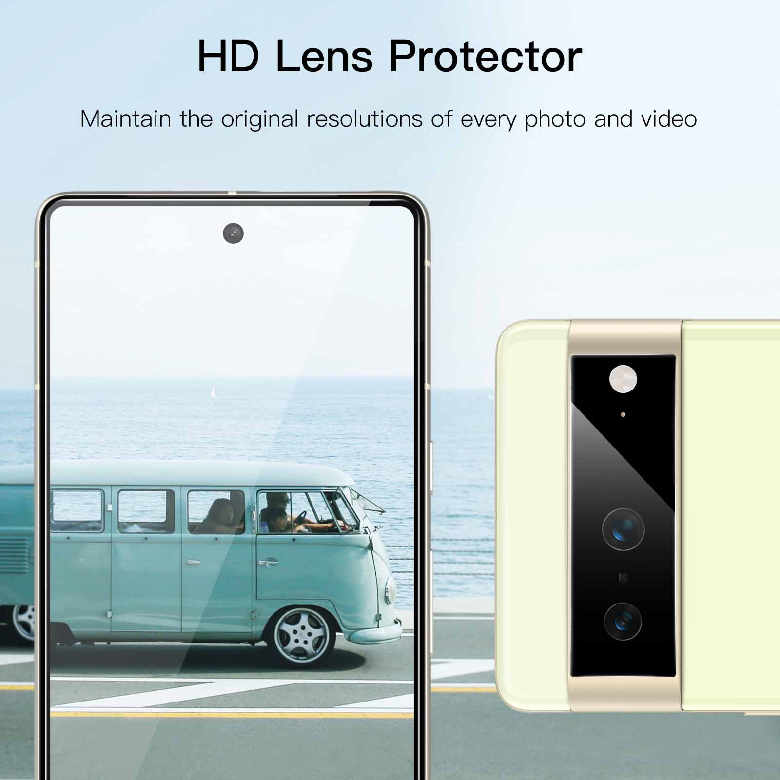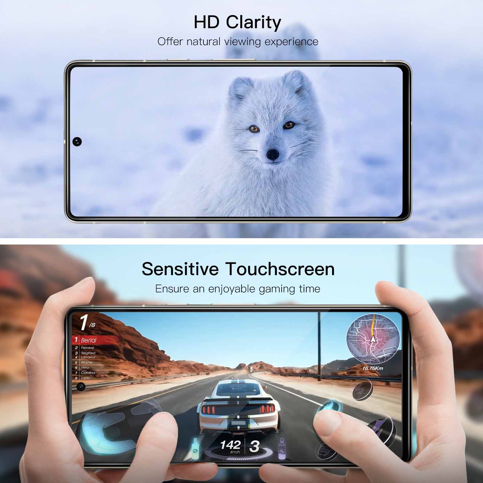 [Premium Material] Both the screen protector and camera lens protector are made of tempered glass. Protect your screen and camera lens effectively from daily scratches, bumps or drops