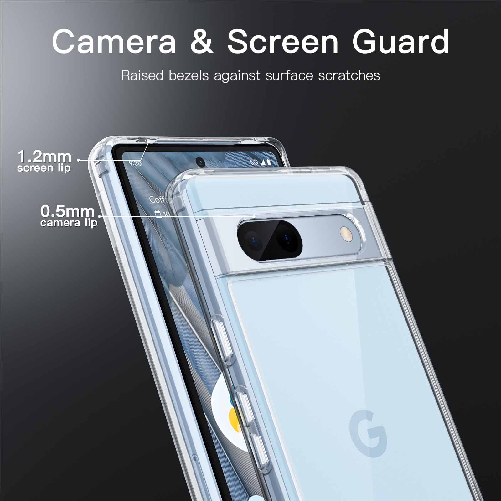 [More Protective] Thoughtful raised bezels around the screen and camera offer added protection against surface scratches. In addition, unique cushions in the four corners effectively absorb shock