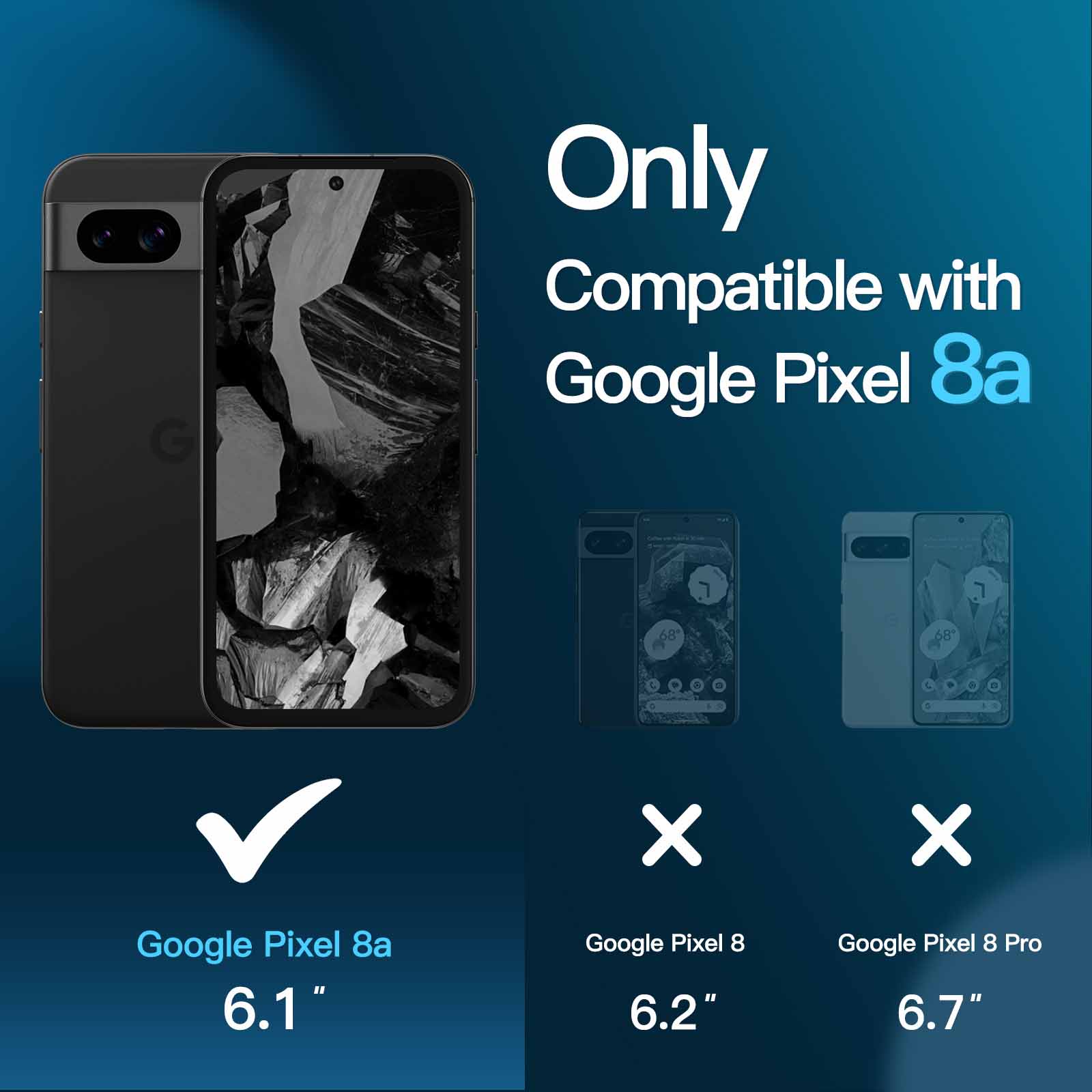 [Compatibility] Designed for Google Pixel 8a 6.1 inch for great protection. Designed with thoughtful 2.5D curved edges, compatible with most phone cases. Please kindly check your device model before purchasing