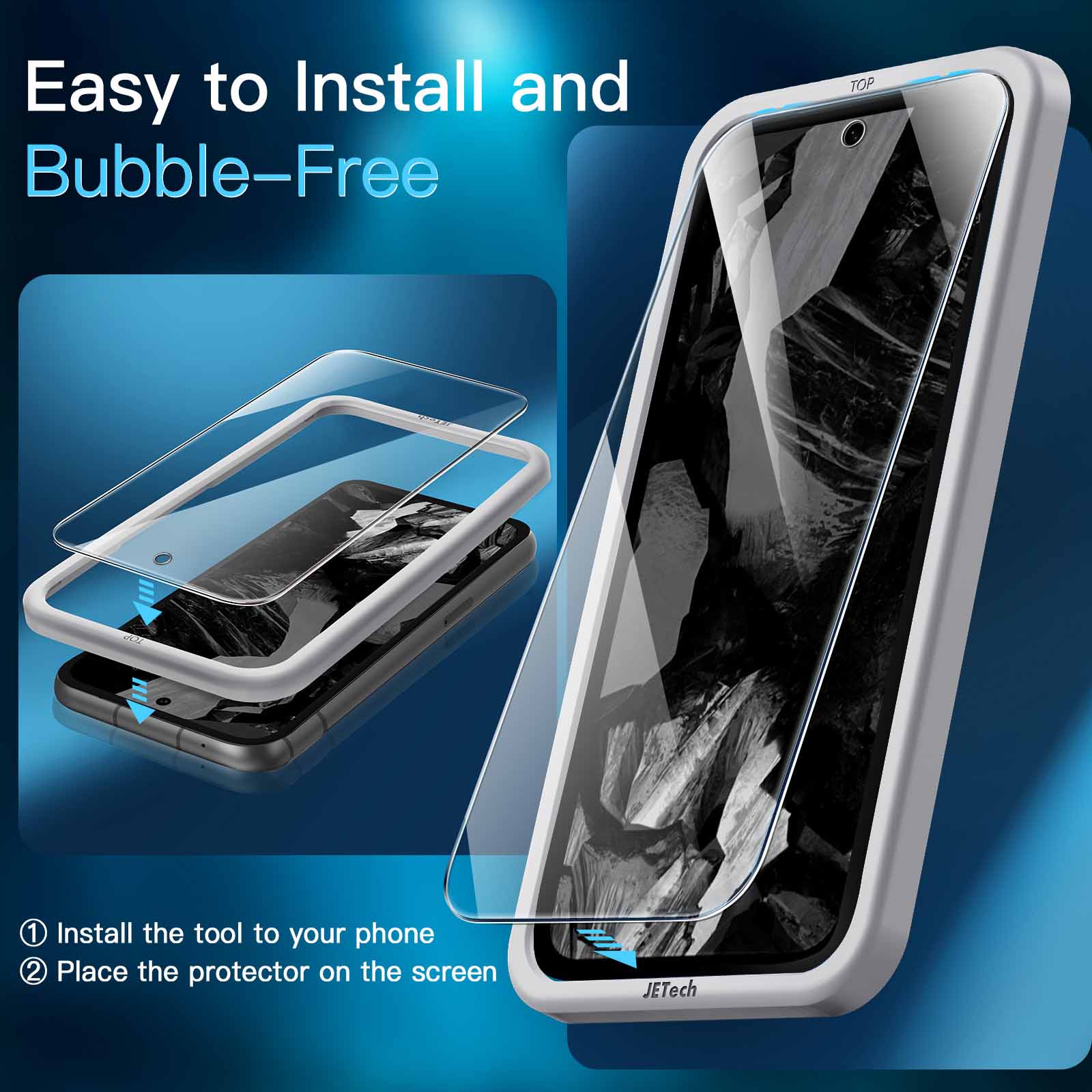 JETech Screen Protector for Google Pixel 8a 6.1-Inch with Camera Lens Protector, Easy Installation Tool, Fingerprint Compatible, Tempered Glass Film, HD Clear, 2-Pack Each