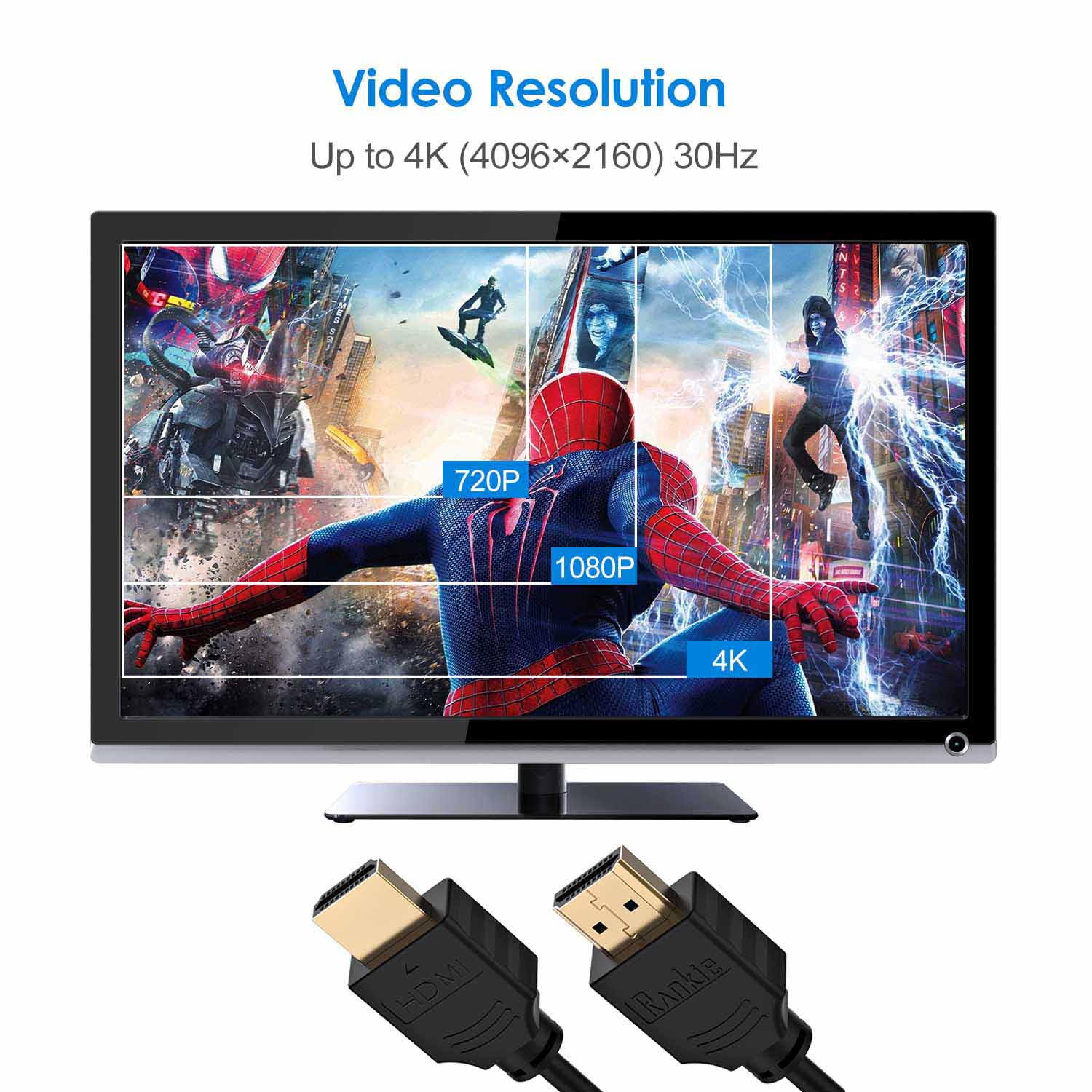 Category 2 Certified HDMI wire supports resolutions up to 4Kx2K (UHD) @30 Hz