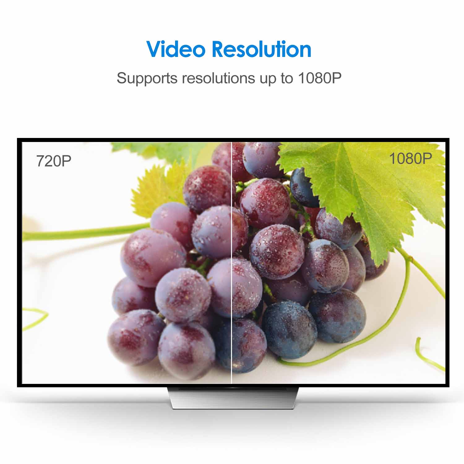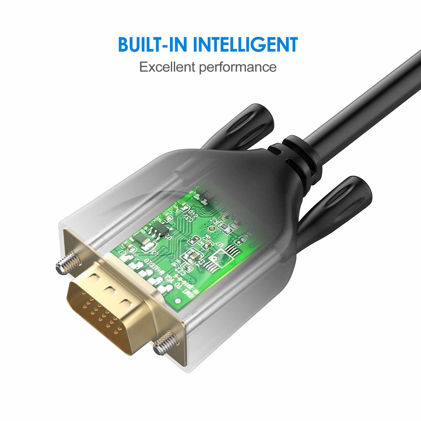 The HDMI Male to VGA Male cable supports resolutions up to 1920×1080@60Hz (1080p Full HD) including 720p, 1600×1200, 1280×1024 for high definition monitors or projectors