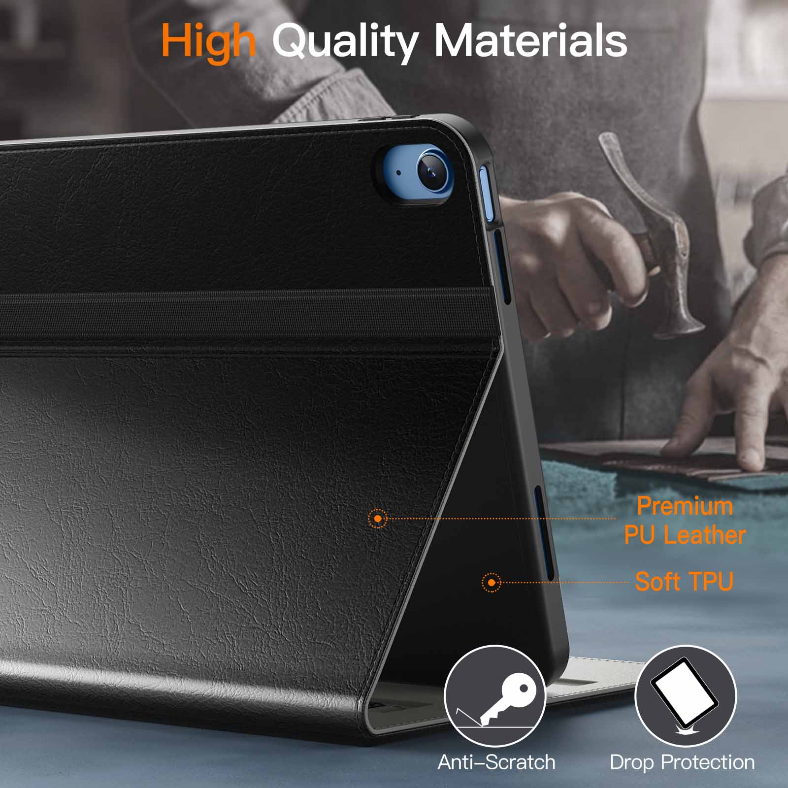 • [Quality Materials] Built with a premium PU leather exterior and a soft TPU inner back. Highly protect your iPad against scratches and drops. Durable, classic and comfortable to touch