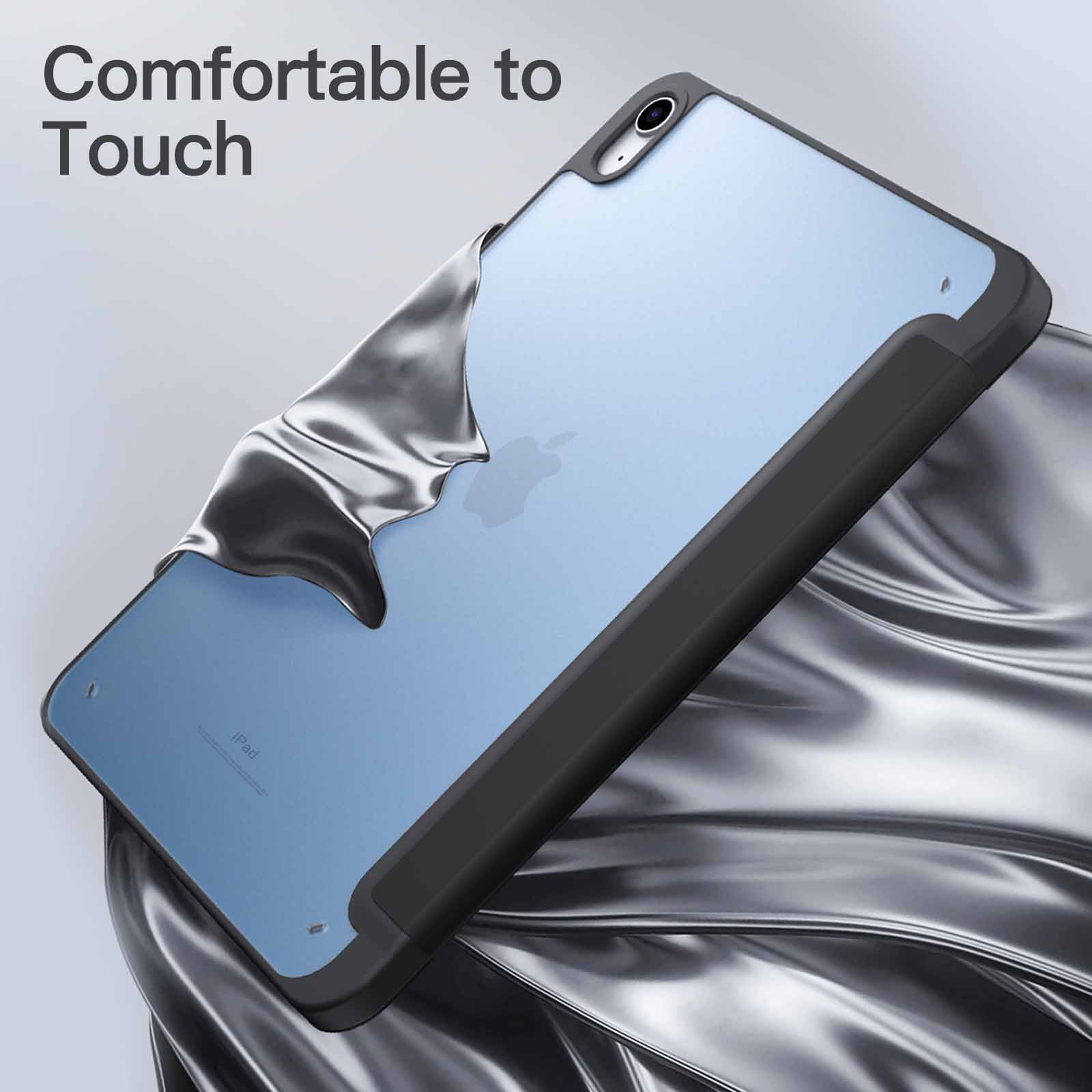 This case is both stylish and functional. providing good looks and solid protection for my IPad 10. The magnetized cover works well and feels solid. yet flexible. The inside of the cover is a soft. felt material which doesn’t scratch or damage the face of the IPad. The back is a semi-translucent. almost frosted material which allows the back of the IPad to see through. The case is flexible enough to allow for easy insertion of the device but still manages to feel as if it firmly fits the tablet. holding it securely. The case also has space for an IPad Pencil. but as I don’t use that instrument. I can’t vouch for its ease of use. The case is light and doesn’t add any significant weight to the IPad when you carry it..Overall. this case offers great value for its price. It is solidly built. providing a feeling of security in case it drops. while also adding an attractive exterior to the tablet.