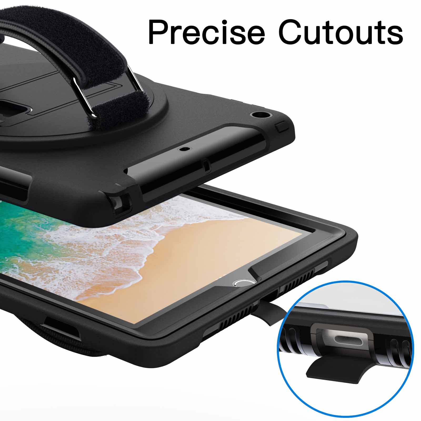 JETech Case for iPad 9.7-Inch (6th/5th Generation, 2018/2017 Model) with Built-in Screen Protector, Protective Shockproof Rugged Tablet Cover, 360?? Rotating Hand Strap Stand