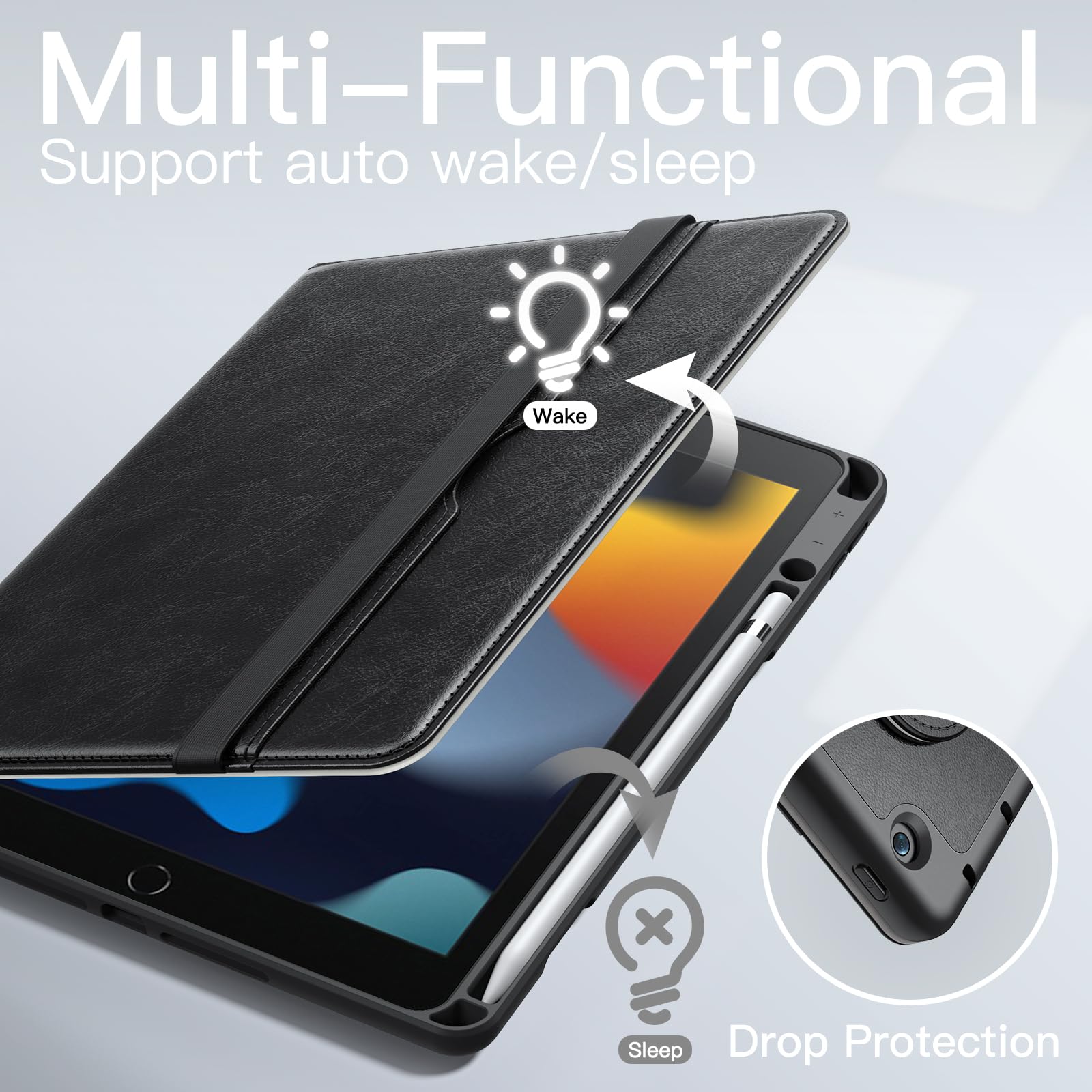 • [Quality Materials] Built with a premium PU leather exterior and a soft TPU inner back. Highly protect your iPad against scratches and drops. Durable, classic and comfortable to touch