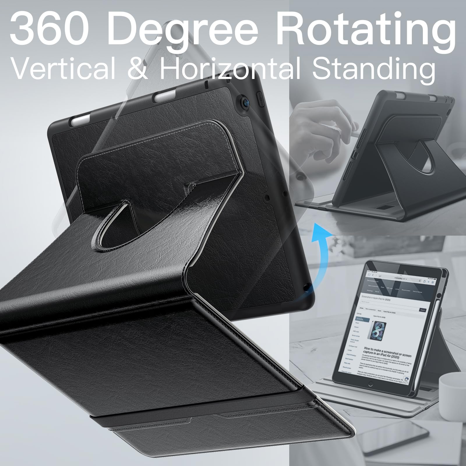 • [360 Degree Rotating] The case coming with a 360 degree swivel design, stably supports your iPad whether in a portrait or landscape stand mode in various angles with two anti-slip deep grooves. Functional and convenient
