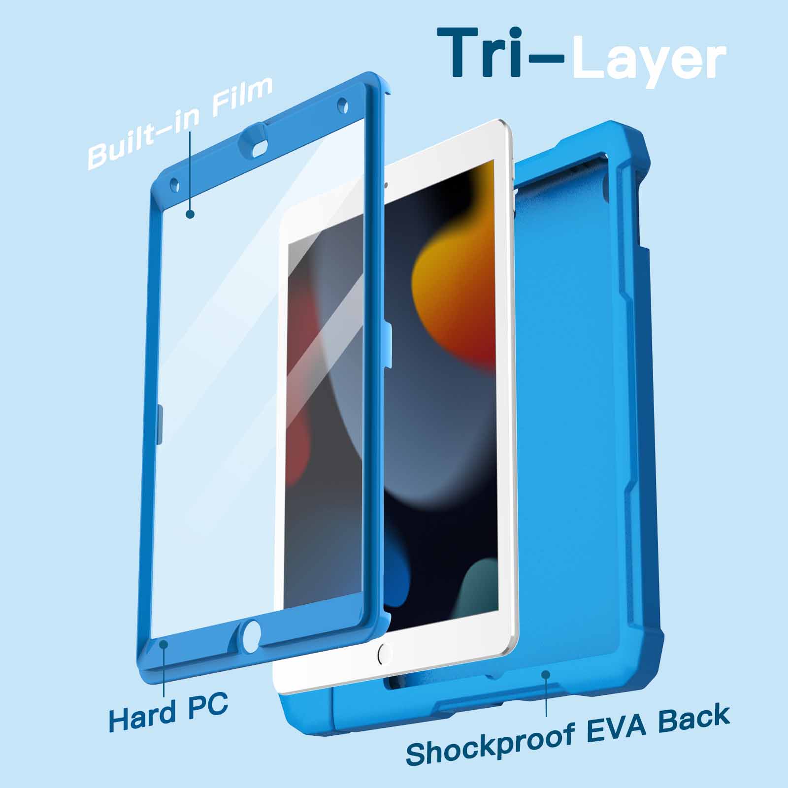 [Full-Body Protection] Built with a durable and detachable PC front cover with built-in PET screen protector, and a shockproof EVA back case. Highly protect your iPad against accidental scratches, drops and bumps