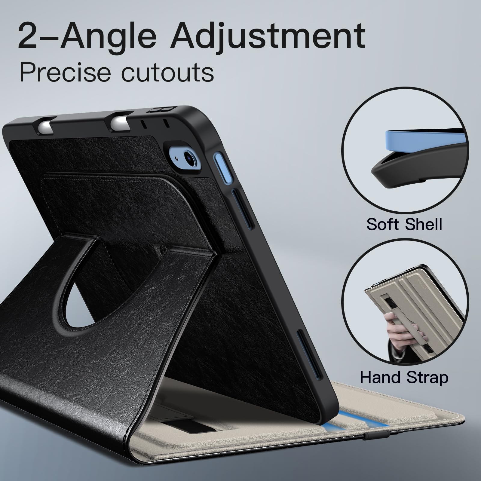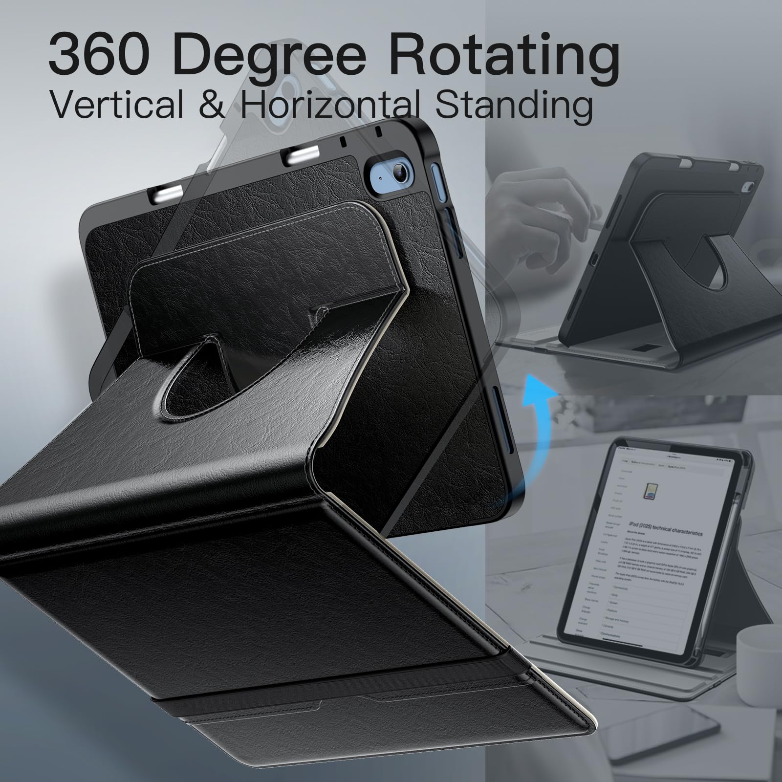 • [360 Degree Rotating] The case coming with a 360 degree swivel design, stably supports your iPad whether in a portrait or landscape stand mode in various angles with two anti-slip deep grooves. Functional and convenient
