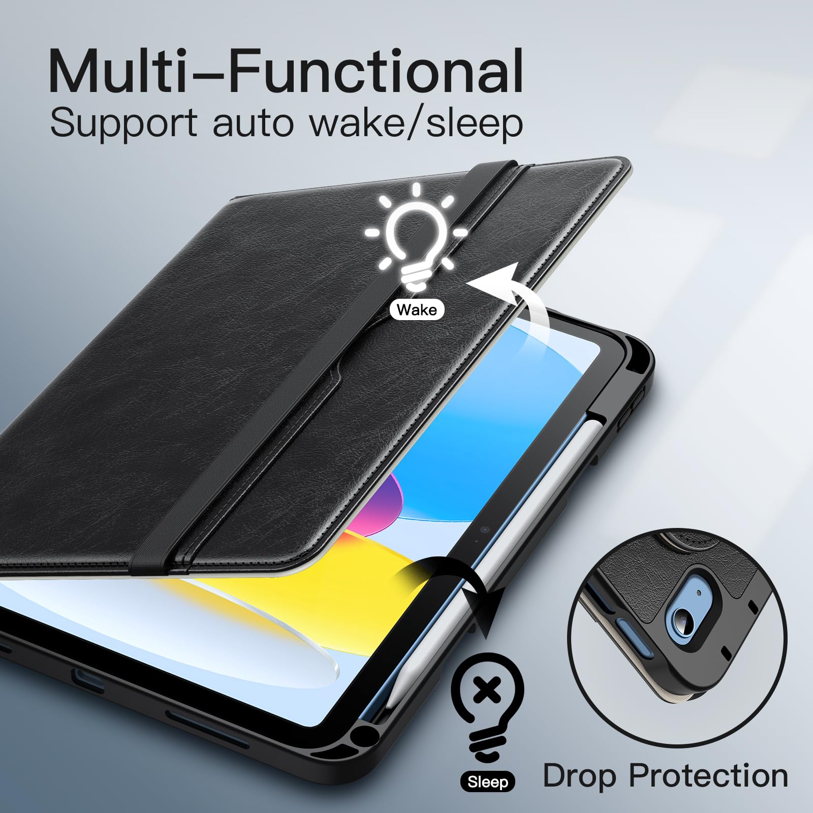 • [Quality Materials] Built with a premium PU leather exterior and a soft TPU inner back. Highly protect your iPad against scratches and drops. Durable, classic and comfortable to touch