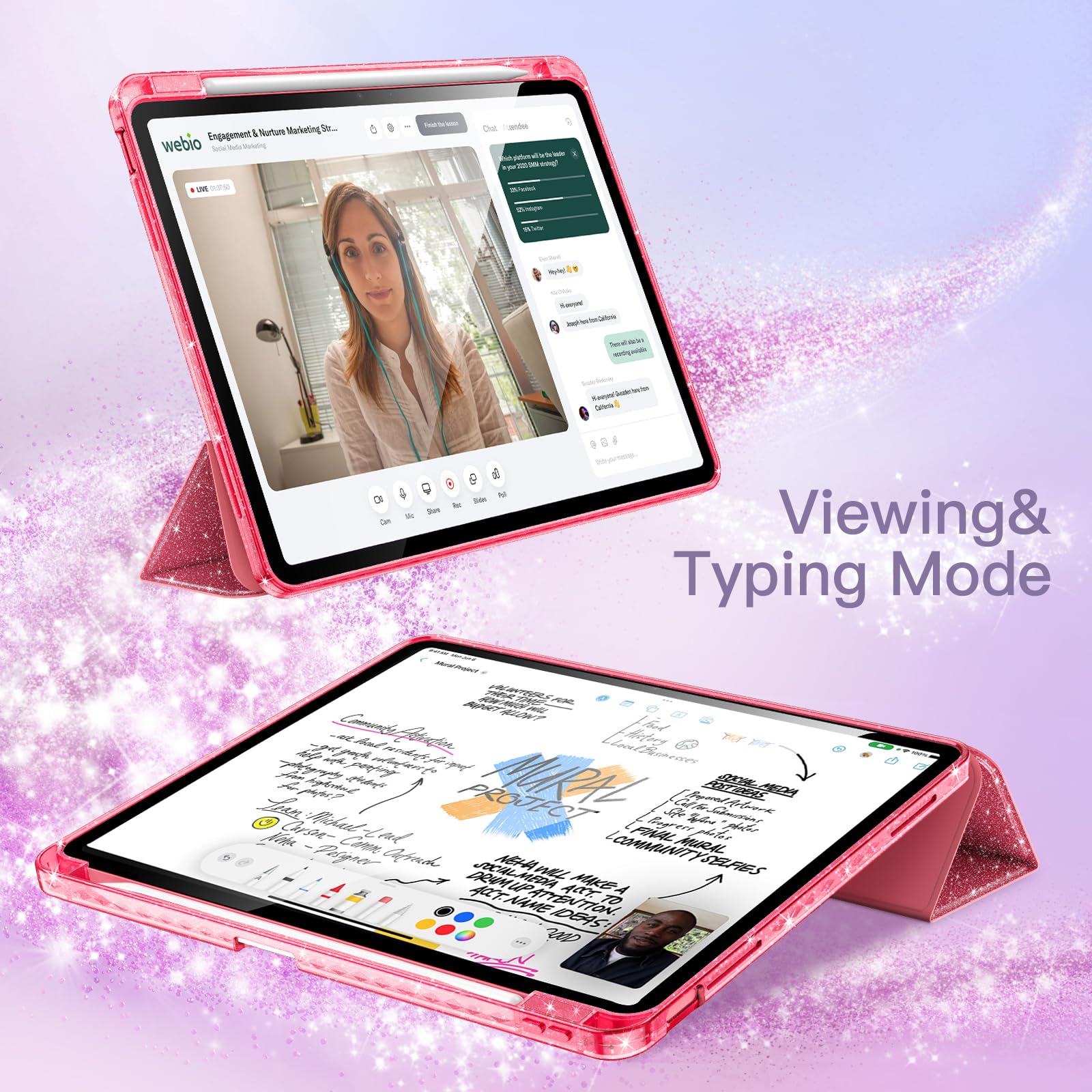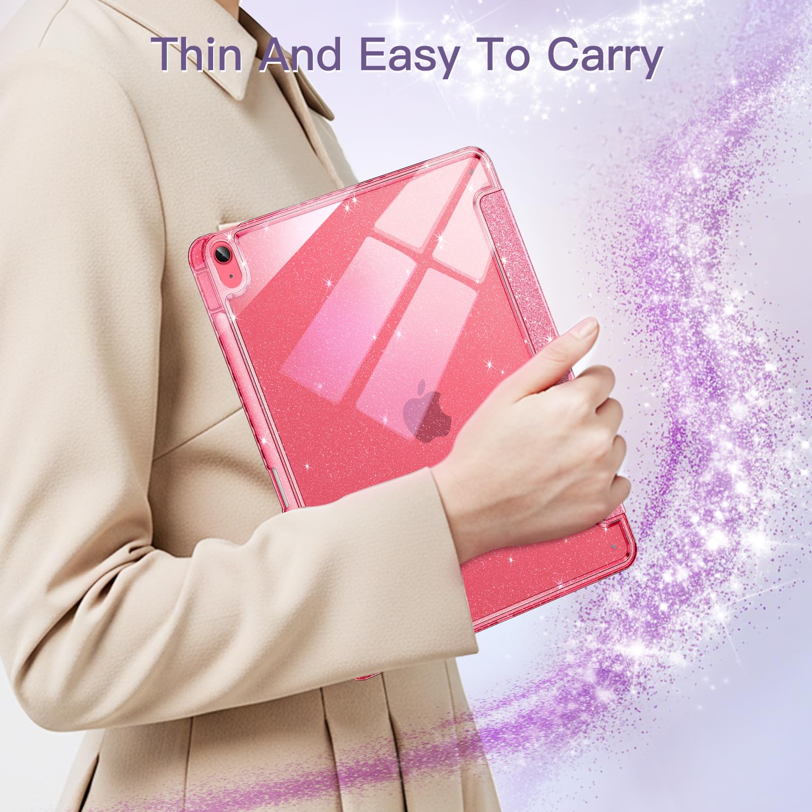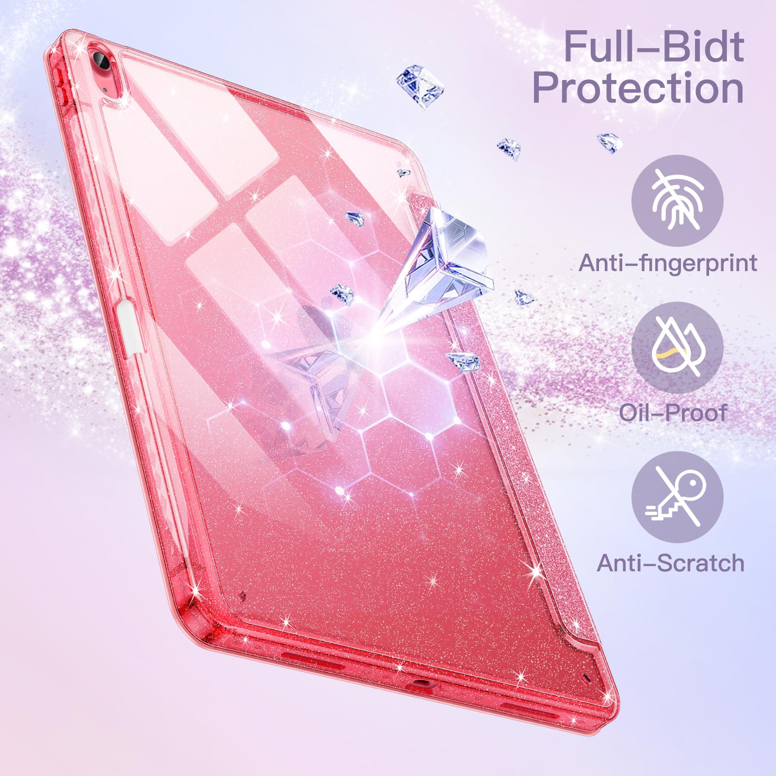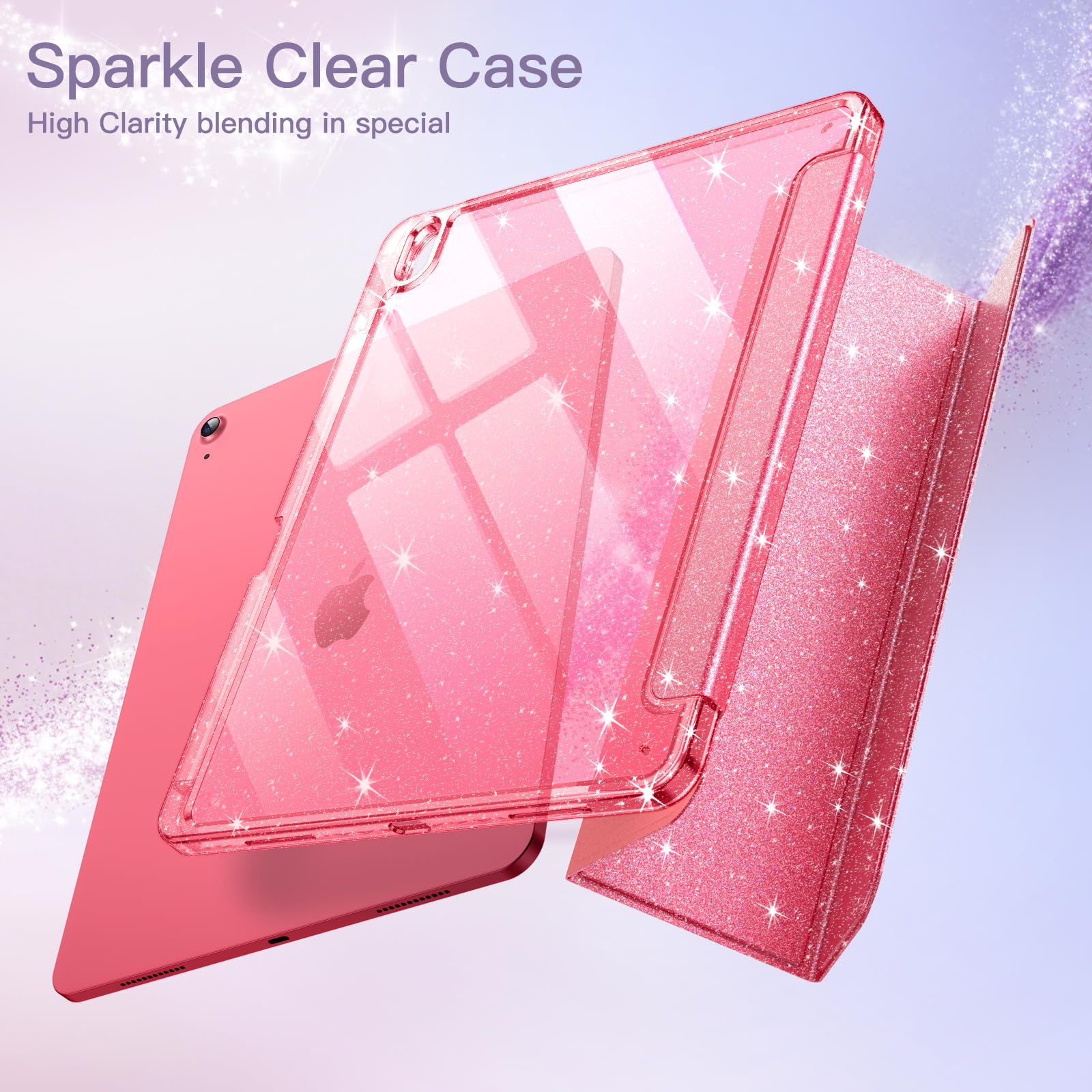 JETech Glitter Case for iPad (A16) 11th/10th Generation (2025/2022) with Pencil Holder, Cute Sparkly Slim Cover for Kids and Girls, Shiny Clear Back Shell