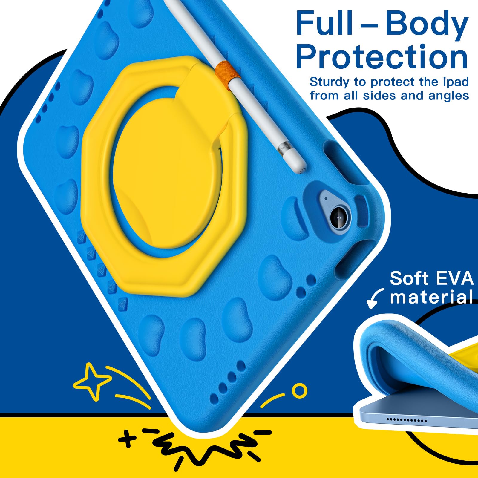 [Highly Shockproof] Built with high quality EVA foam material, this tablet case protects your device during drops and bumps. Also, raised bezels keep the screen and camera away from surface scratches