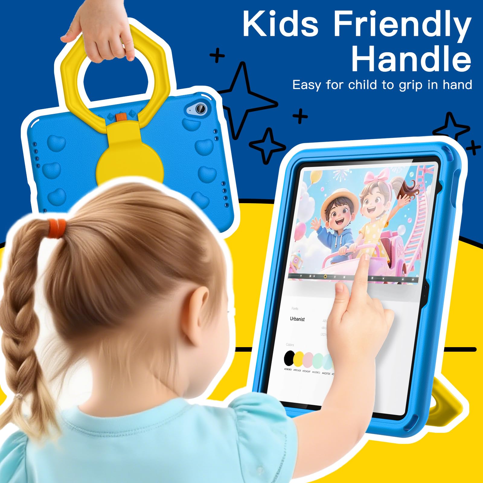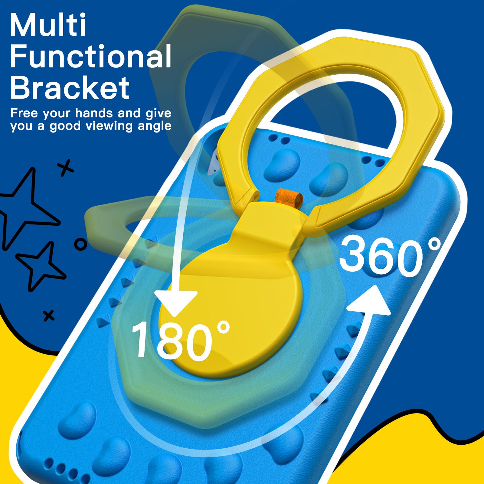 [Versatile Stand] The 360 degree rotating stand allows you to use your device horizontally or vertically at multiple angles. Kickstand stays stable on different surfaces, allowing children to view and type comfortably