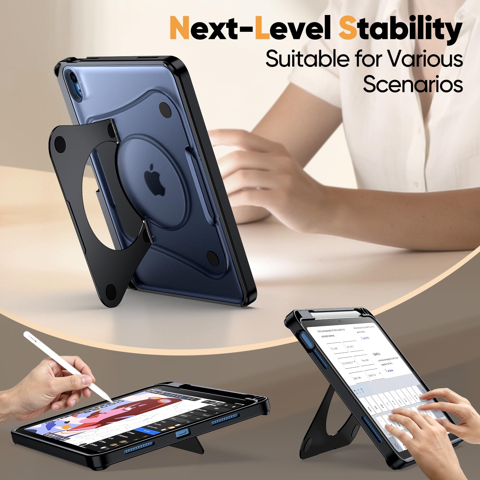• [Multi-Angle Adjustment] The dual-stand design adapts flexibly to different scenarios. The smaller stand positions your device perfectly for detailed drawing and efficient typing. The larger stand offers a wide range of adjustable angles and supports both landscape and portrait modes, enabling optimal viewing comfort in any situation