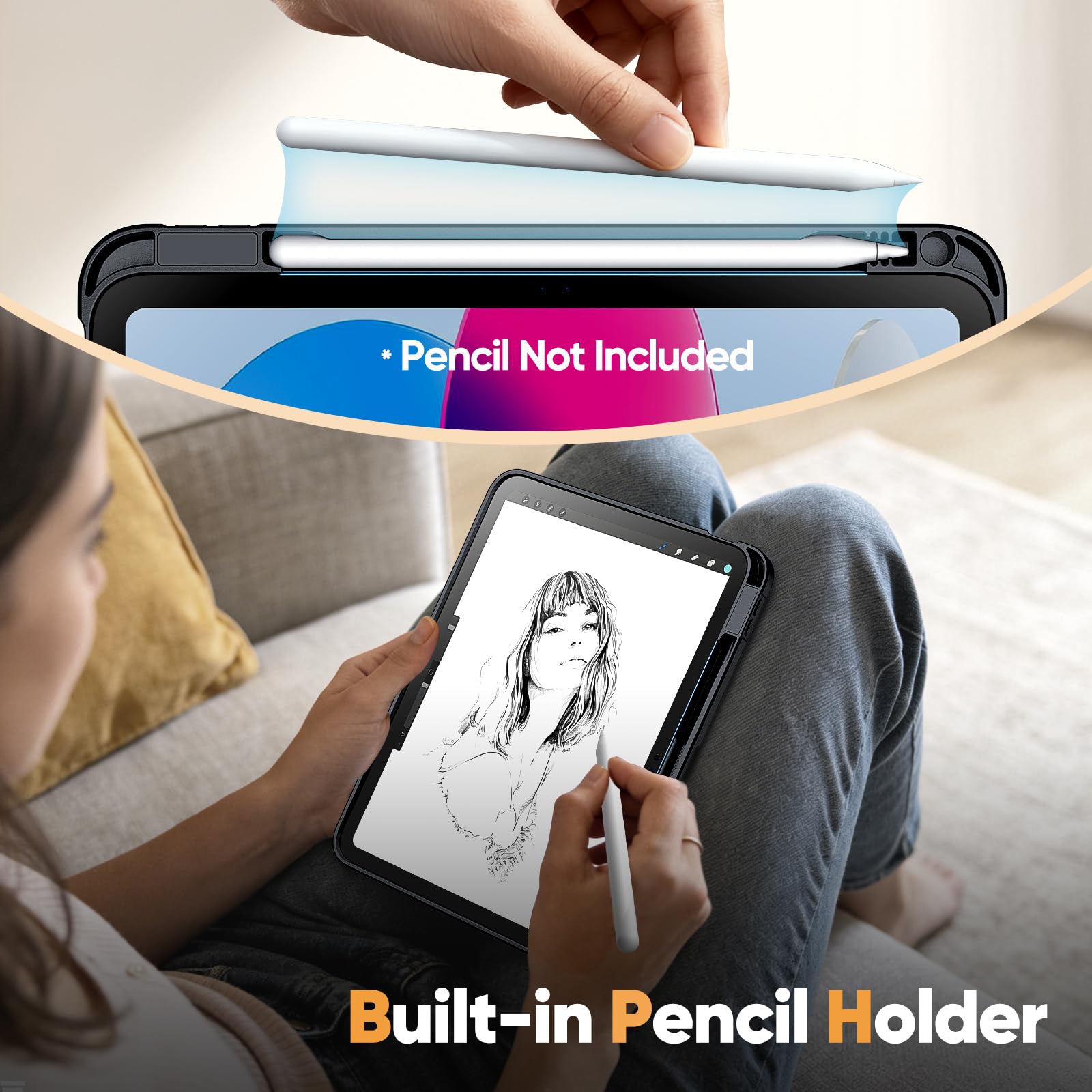 • [Easy to Use] Built-in Pencil holder keeps your Pencil always with the device (Note: Pencil NOT Included). Additionally, precise cutouts allow easy access to the device’s speaker, camera, and other functions. The thoughtfully designed silicone pads effectively absorb noise for a gentle closure