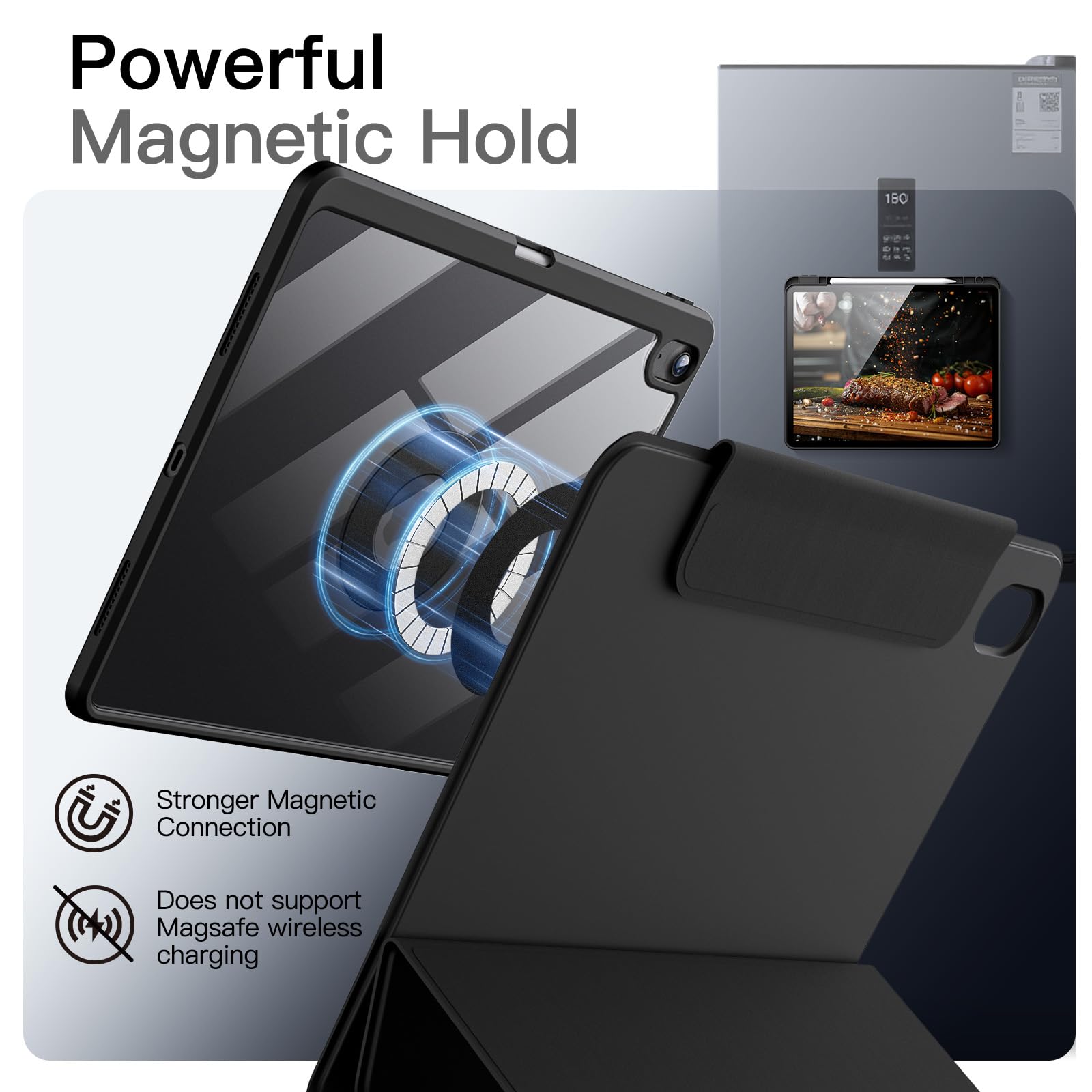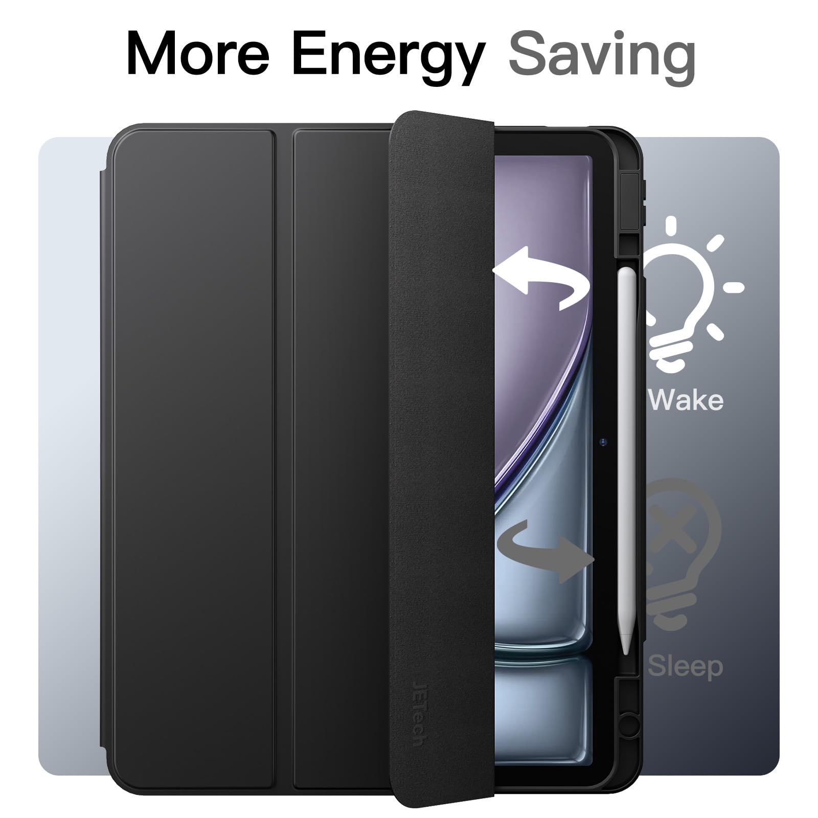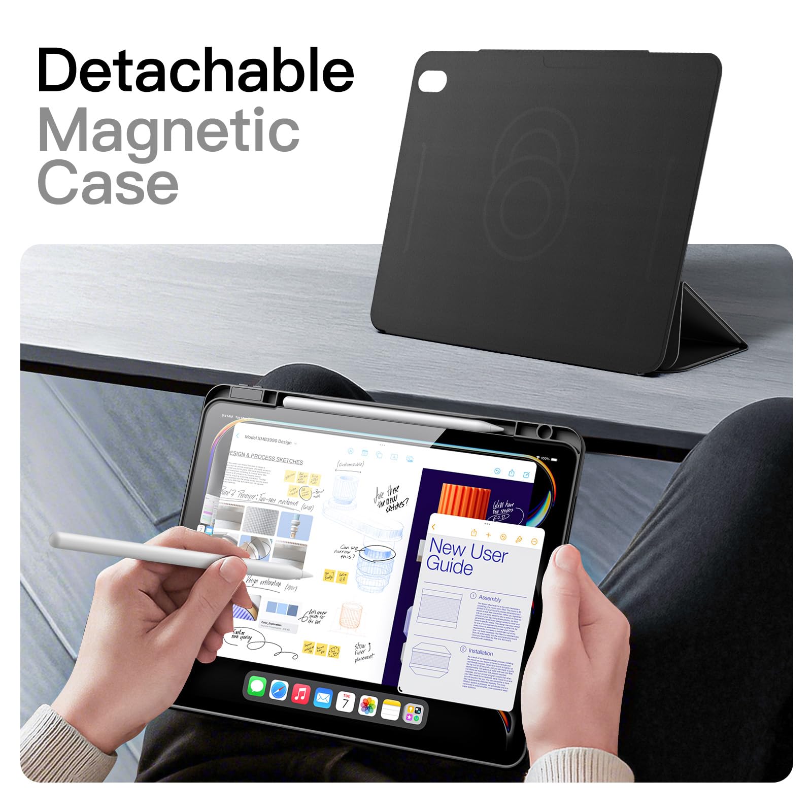 JETech Magnetic Detachable Case for iPad Air 13-Inch M3/M2 (2025/2024) with Pencil Holder, Removable Rotating Clear Cover, Portrait/Landscape Stand with Raised Screen View