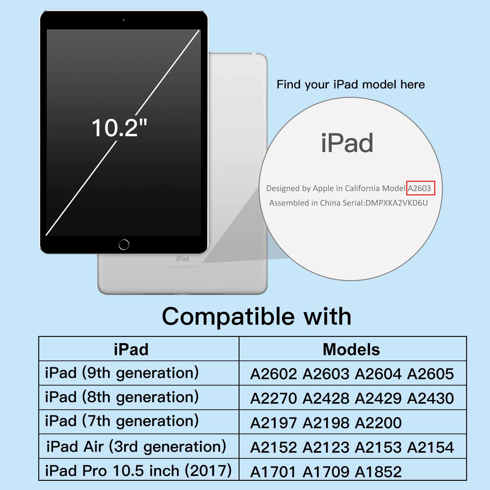 [Wide Compatibility] Case for iPad 10.2 (9th/8th/7th Generation, 2021/2020/2019), iPad Air 3 10.5 (3rd Generation, 2019) and iPad Pro 10.5 2017. Fit?models:?A2602 / A2603 / A2604 / A2605 / A2197 / A2198 / A2200 / A2270 / A2428 / A2429 / A2430 / A1701 / A1709 / A1852 / A2152 / A2123 / A2153 / A2154