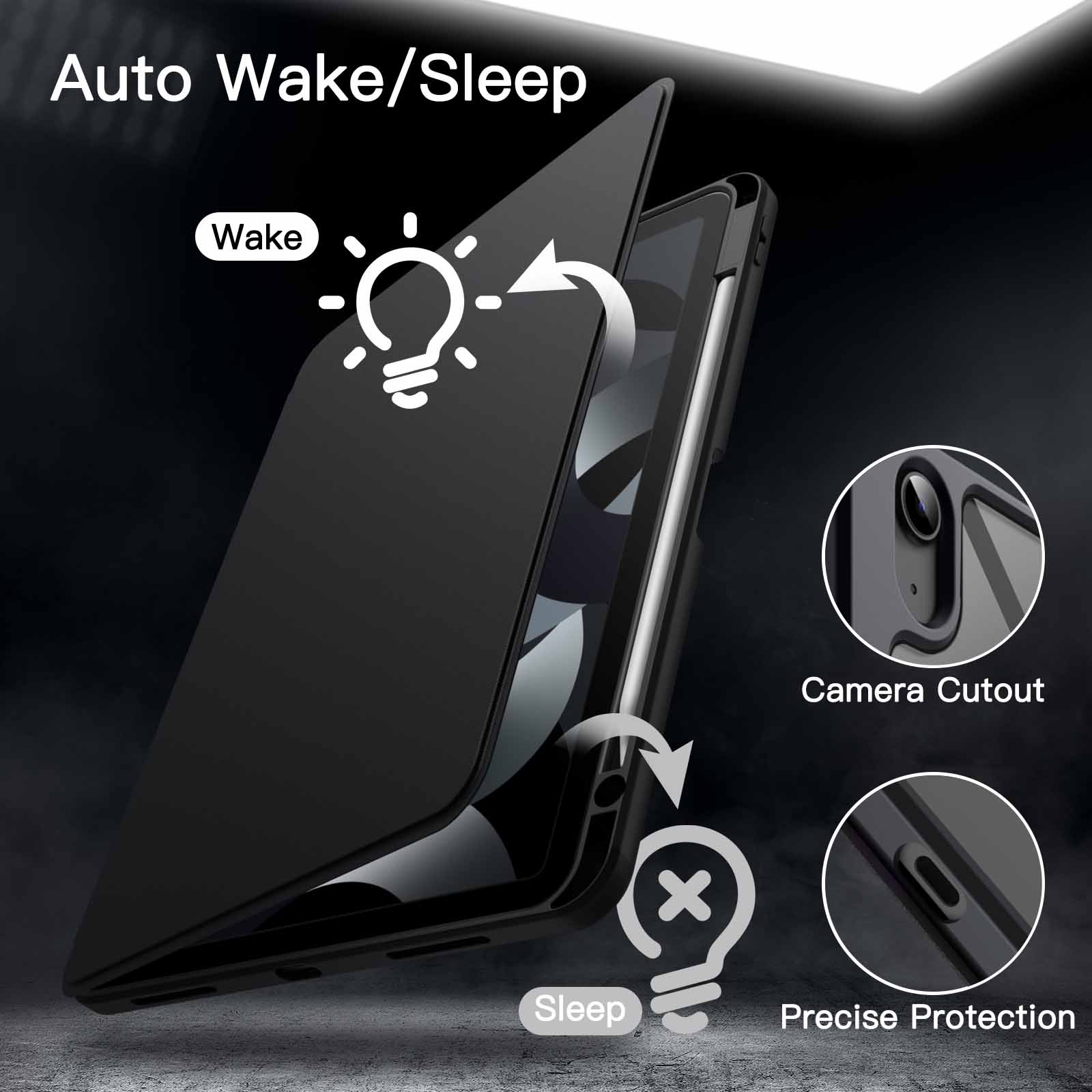 [Auto Wake/Sleep] Wake up the screen or bring it to a sleep mode by opening or closing the front cover. More energy-saving, and the built-in magnet keeps the case securely closed