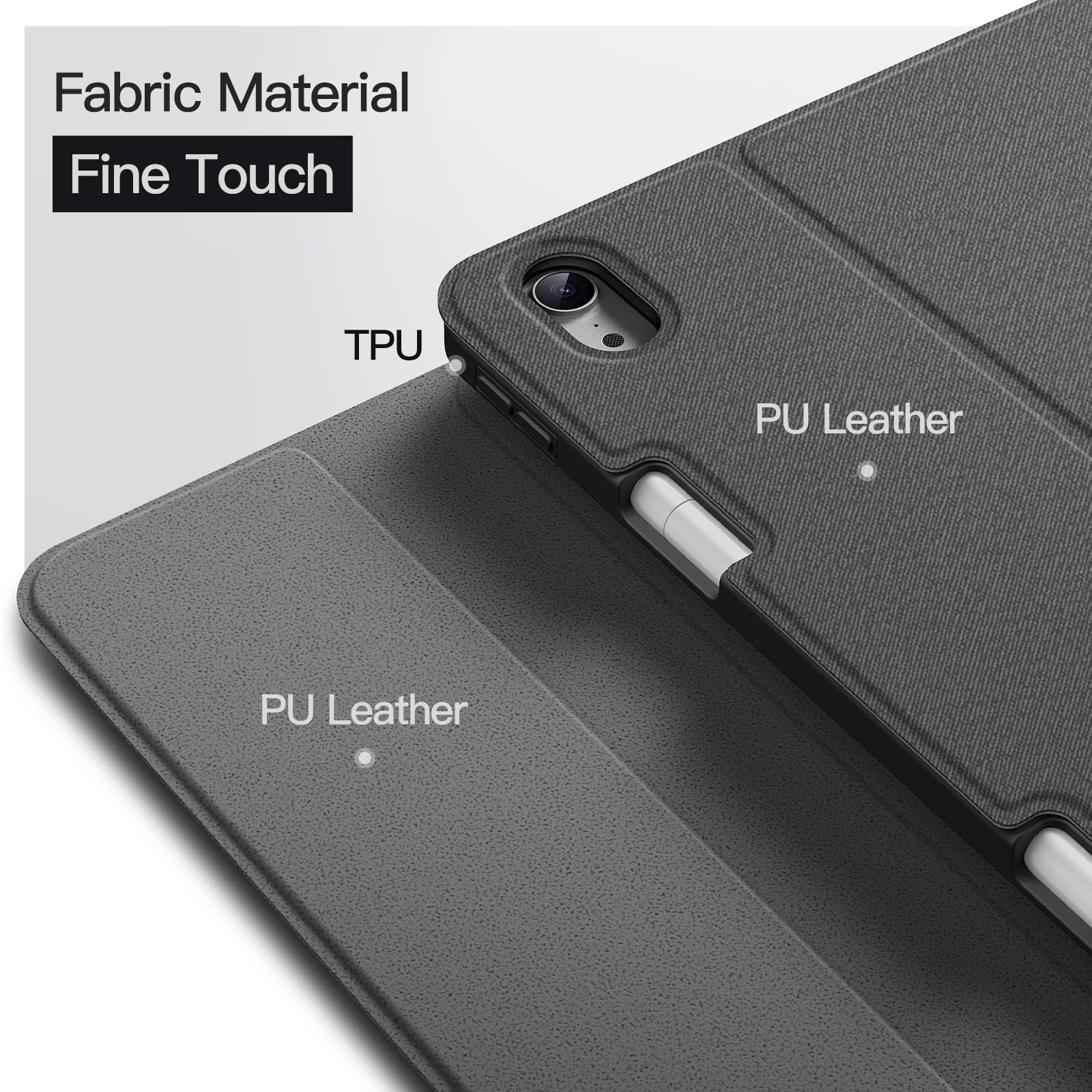 [Premium Material] The quality PU front and back cover surface is silky to touch. The flexible TPU inner back provides comprehensive protection to your iPad against scratches and bumps. In addition, equipped with a pencil holder for easy storage (Pencil Not Included)