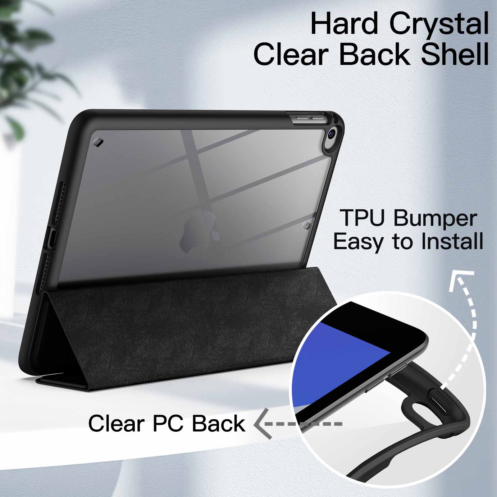 • [Clear Crystal Back] Built with flexible TPU bumper and transparent hard PC back shell for showing the original beauty of your device. Highly protect your iPad against scratches and bumps, while making it easy to install or take it off