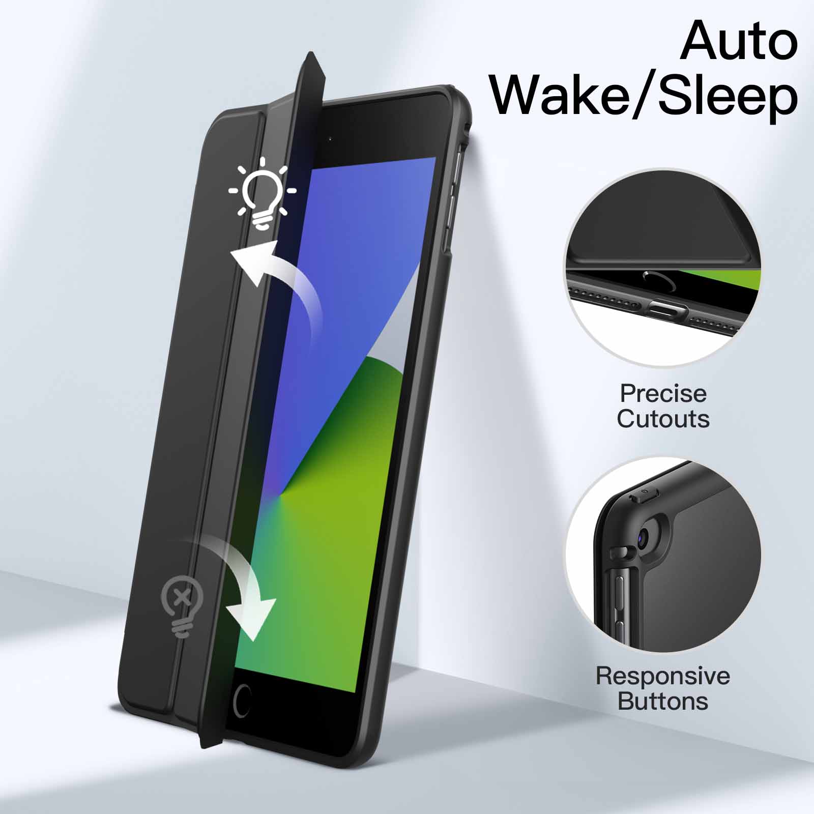 • [Precise Cutouts] Magnetic smart cover supports automatic sleep/wake function. Perfectly aligned cutouts for easy access to speakers, buttons and other ports