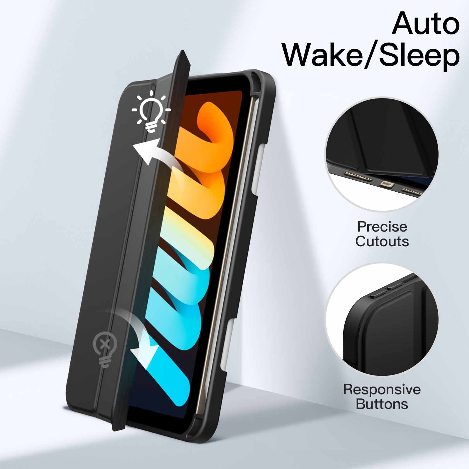 [Precise Cutouts] Magnetic smart cover supports automatic sleep/wake function. Perfectly aligned cutouts for easy access to speakers, buttons and other ports