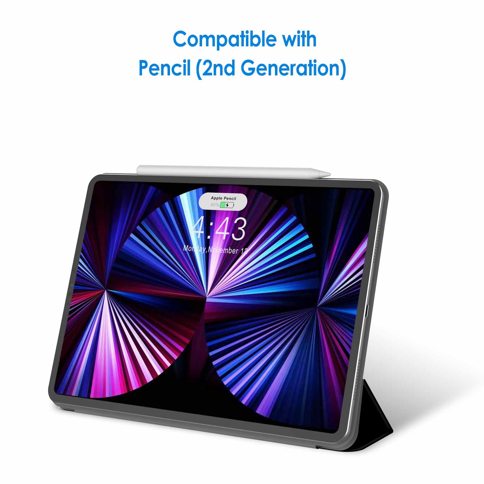 Slim/light design supports the Pencil”s magnetic attachment and wireless charging. Easy access to all the controls and features