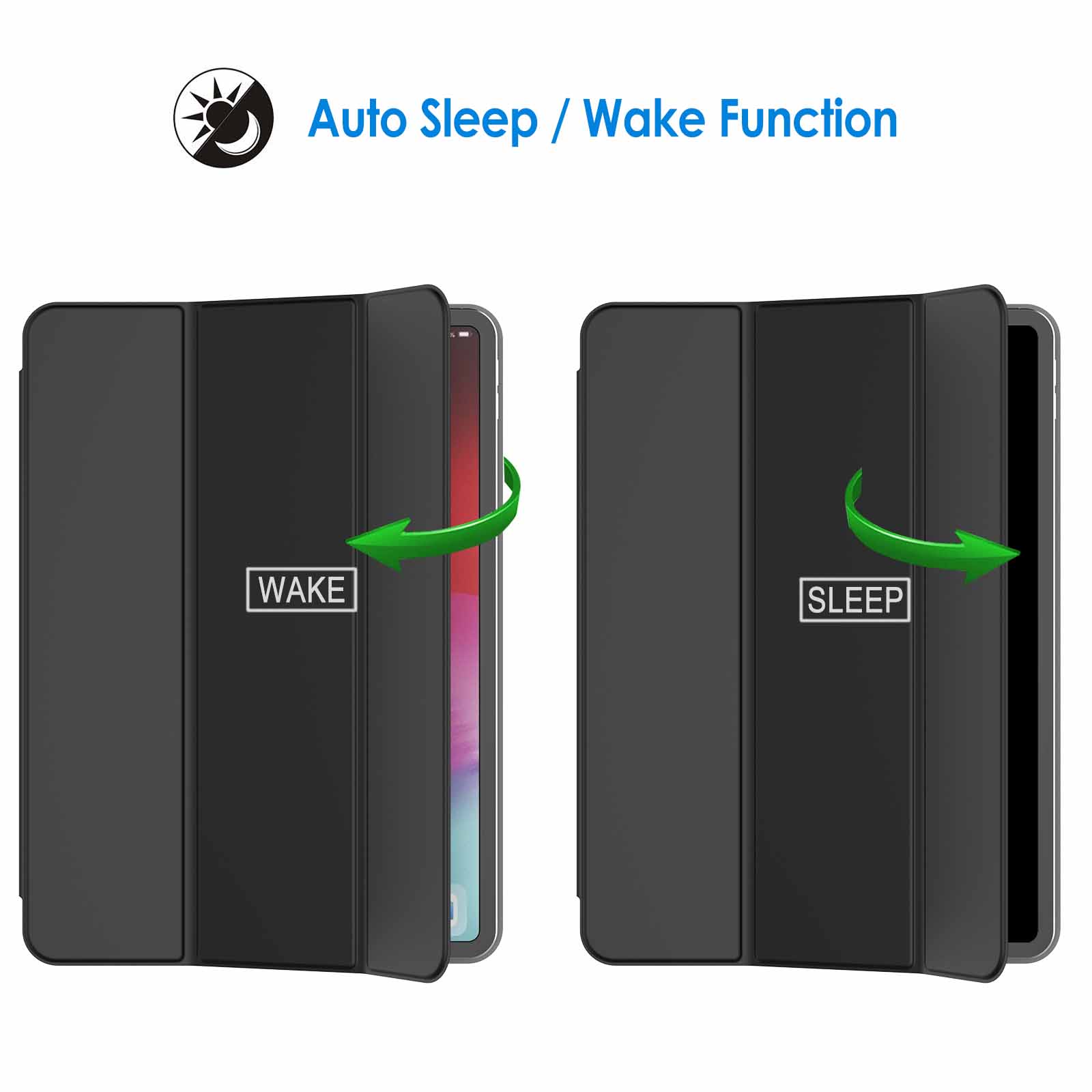 Magnetic smart case supports automatic sleep/wake function. Strong magnetic adsorption ensure your device attached firmly and easily