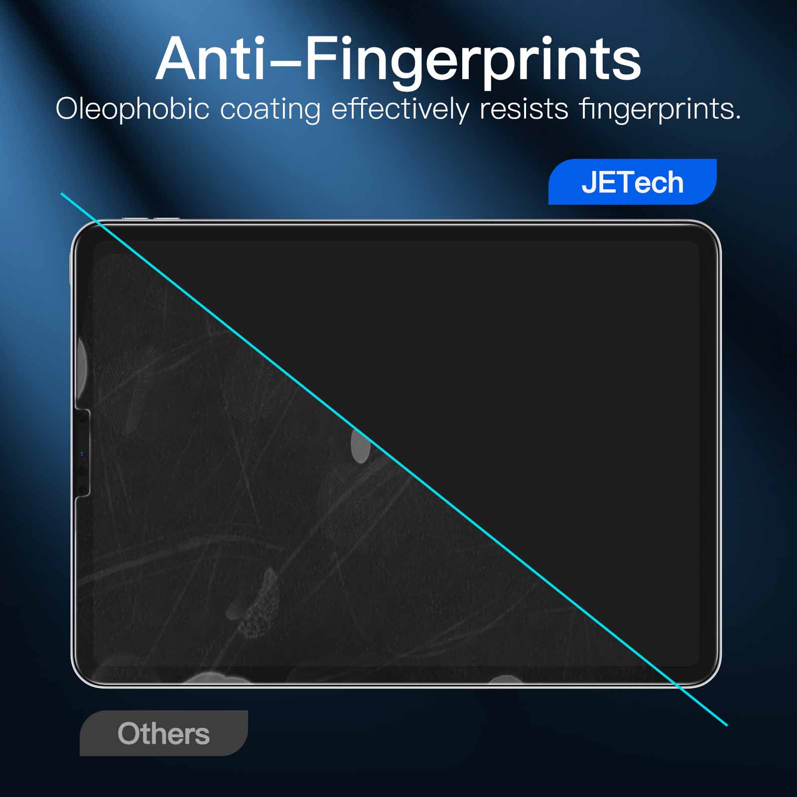 Wow Amazing install! I am so impressed with the install of my new screen protector. I felt the instructions included with the packaging were just a tad confusing so I watched the less than 2 min. video and it walked me right through. Easy peasy! However. I had a bubble the size of a quarter right in the middle of the screen. NOW here’s the REALLY good part – I sent a message to JETech support asking for help after using the handy dandy scraper thingy (included) to try to eliminate the bubble. I expected an answer in maybe three days. But JETech answered me in I believe less than three hours. with the perfect solution – raise a corner gently and the bubble should disappear. Which it did! this is GREAT support! It looks great and it does show less finger prints. Super impressed and happy! Yep it’s a little more expensive. but jeez what did you pay for your iPad?