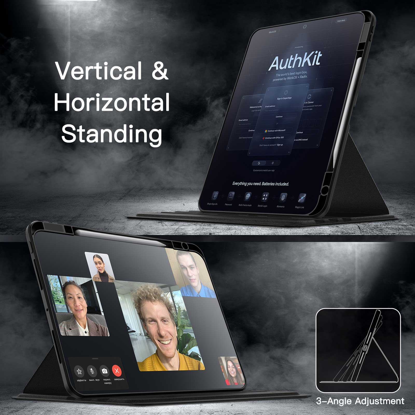 • [Sturdy Protection] Built with clear PC back, shockproof TPU frame and PU leather front cover, this case protects your iPad well against drops and bumps. Also offer seamless protection with precise cutouts for the speaker, camera, buttons and other ports