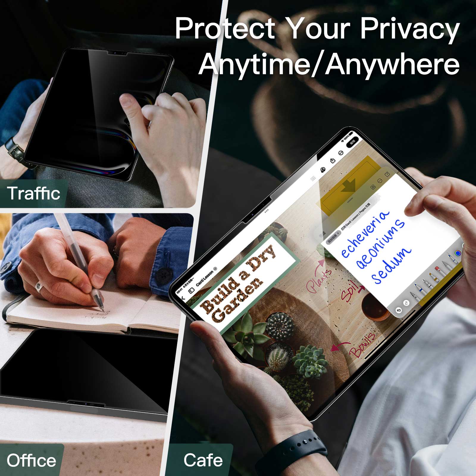 [Privacy Protection] When the iPad is held horizontally, the screen is only visible to persons directly in front of screen, protecting your privacy from peeping by strangers. (Note that the protector will darken the screen a little for a better anti-spy effect. And you can turn up the display brightness for better viewing experience)