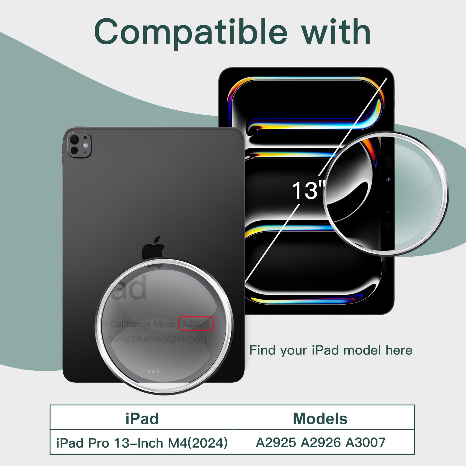 [Compatibility] Exclusively for iPad Pro 13-inch M5/M4 (2025/2024). Fit iPad Model Numbers: A3360 / A3361 / A3362 / A2925 / A2926 / A3007. Please carefully check back bottom of your device to find the model number