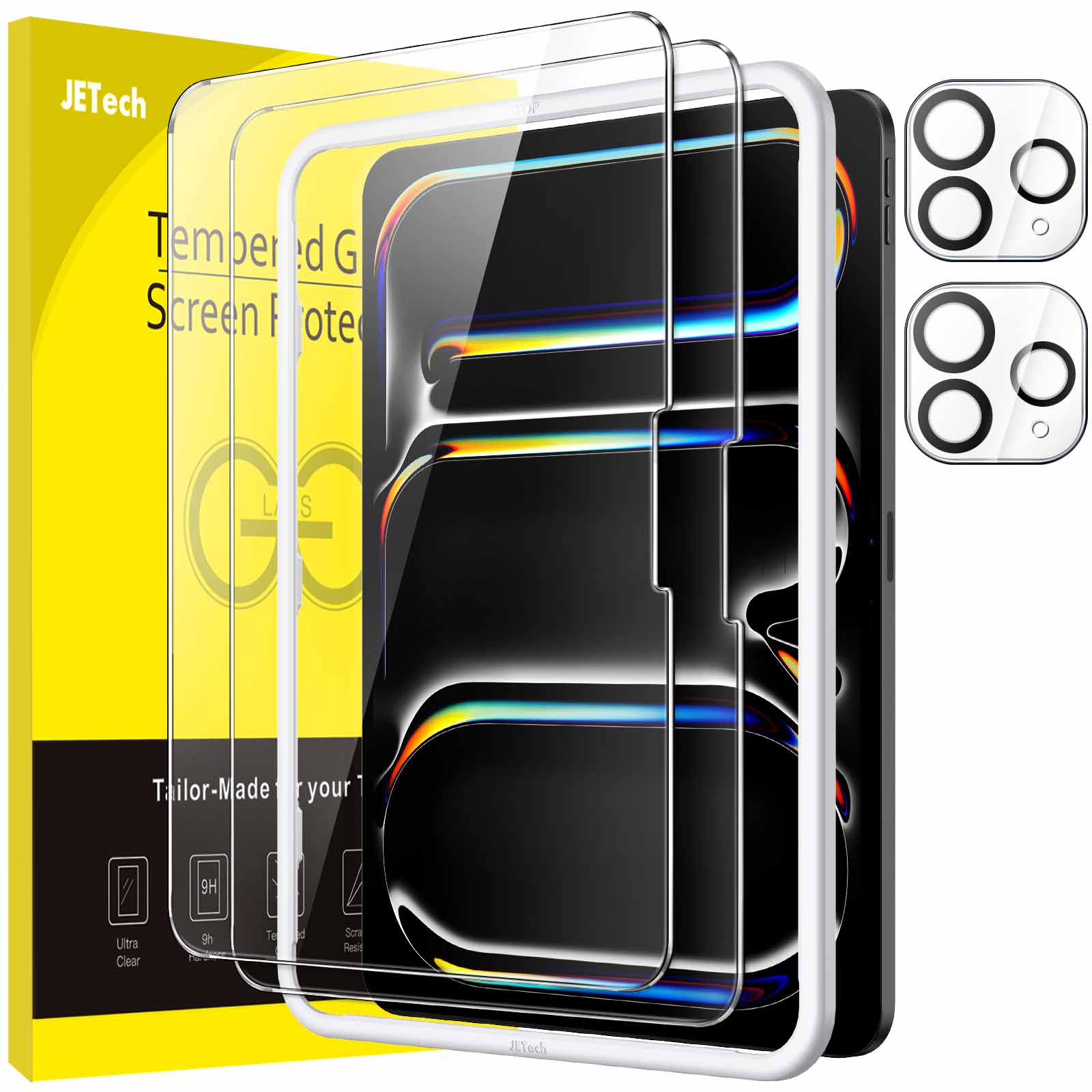 JETech Screen Protector for iPad Pro 13-Inch M5/M4 (2025/2024) with Camera Lens Protector, Easy Installation Tool, Tempered Glass Film Anti-Scratch, HD Clear, 2-Pack Each
