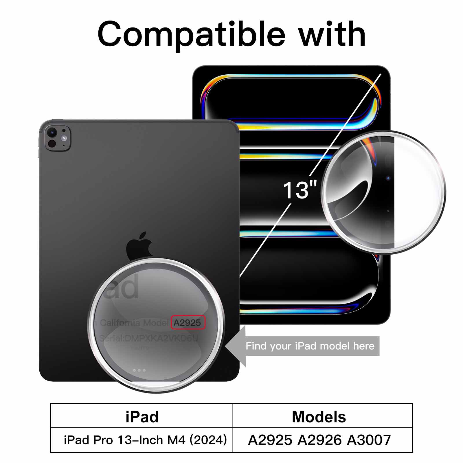 [Compatibility] Designed for iPad Pro 13-inch M5/M4 (2025/2024). Fit models: A3360 / A3361 / A3362 / A2925 / A2926 / A3007. Please check back bottom of your device to find the iPad model before purchasing