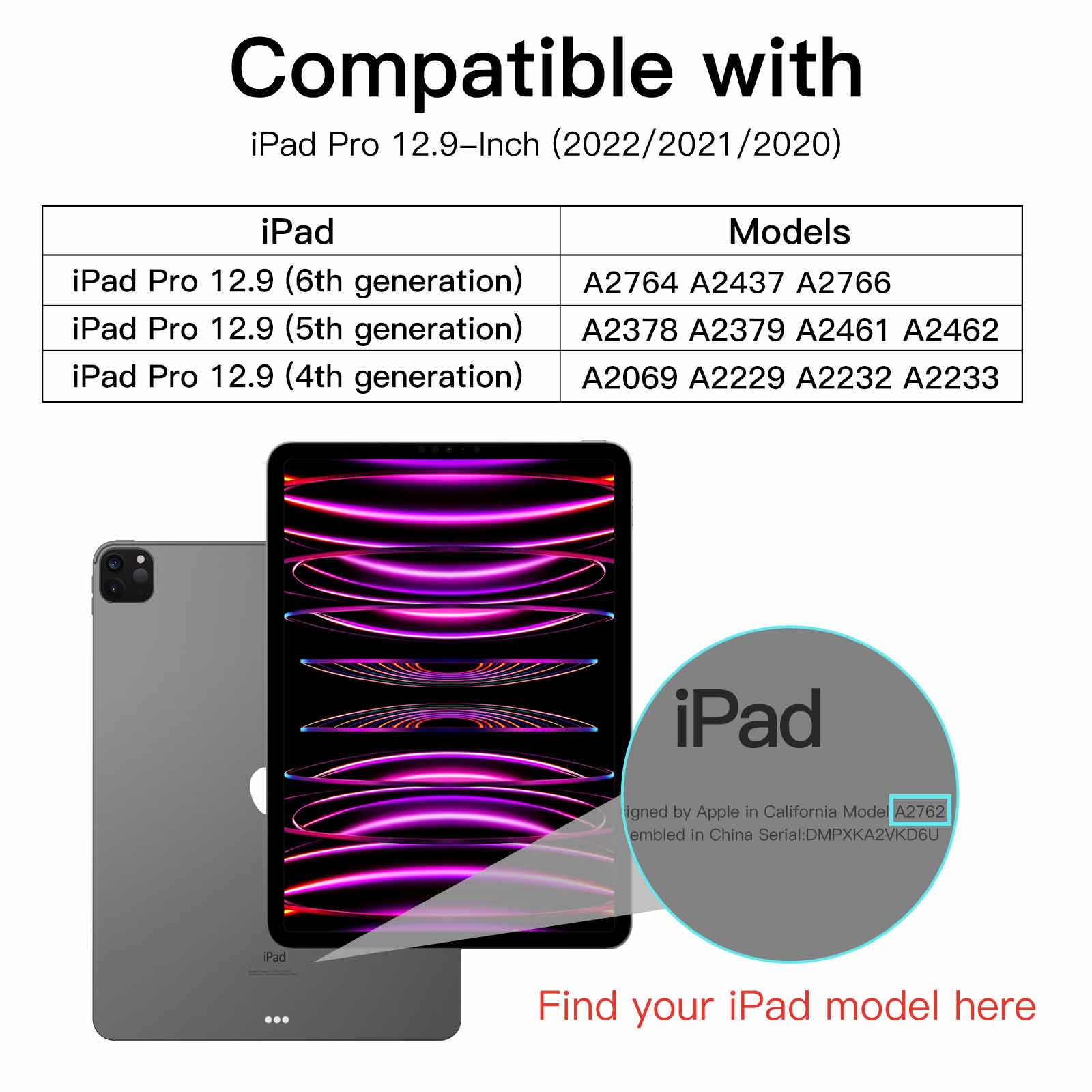 [Compatibility] Designed for iPad Pro 12.9-inch, 2022/2021/2020 (6th/5th/4th Generation). Fit models: A2764 A2437 A2766 A2069 A2229 A2232 A2233 A2378 A2379 A2461 A2462. Please check back bottom of your device to find the iPad model before purchasing. Product contains 2* Screen Protector, 2* Camera Lens Protector