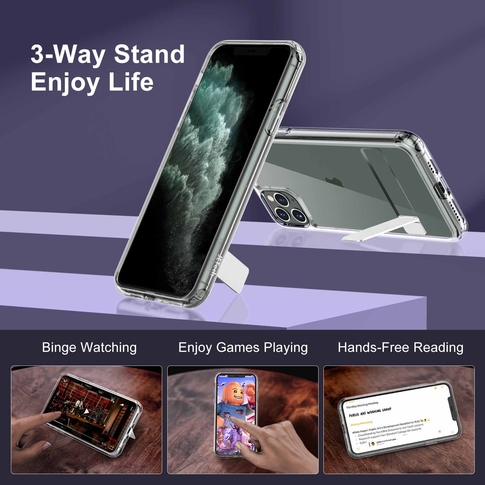 • [Built-in Stand] Designed for iPhone 11 Pro 5.8-inch. The metal stand stays smooth and flat to the cover back. Support wireless charging