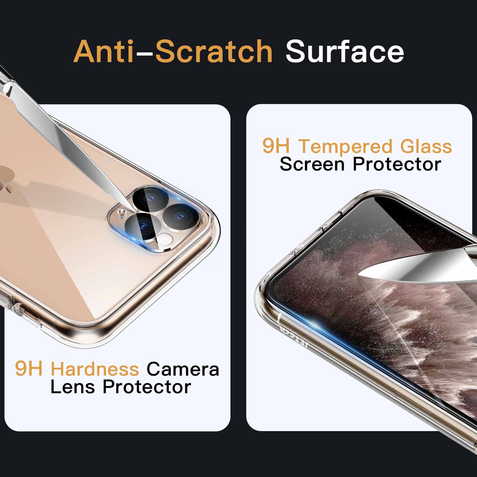 [Tempered Glass] Both screen protector and lens protector are built with 9H hardness material. HD clear and ultra-responsive, while protecting screen and camera lens against accidental scratches and abrasions