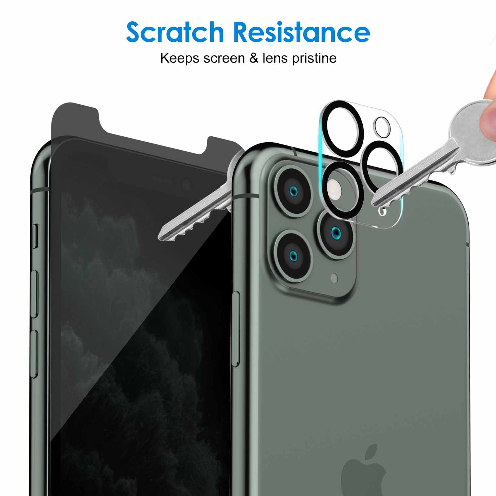 JETech Privacy Screen Protector and Camera Lens Protector Compatible with iPhone 11 Pro 5.8-Inch, Anti Spy Tempered Glass Film, 2-Pack Each