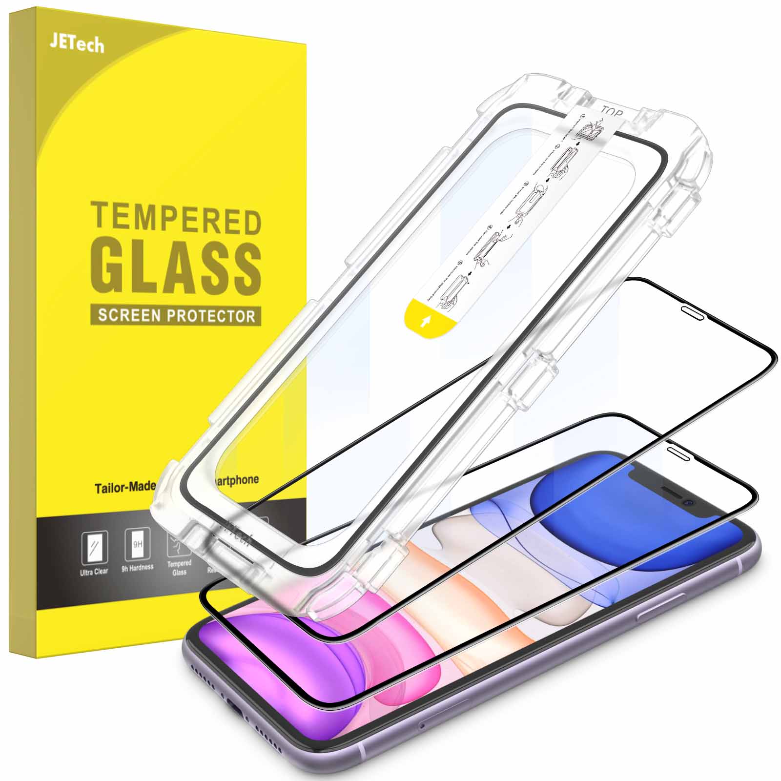 JETech One Touch Install Screen Protector for iPhone 11/XR 6.1-Inch, Full Coverage Tempered Glass Film, Auto Alignment Tool Kit, HD Clear, 2-Pack