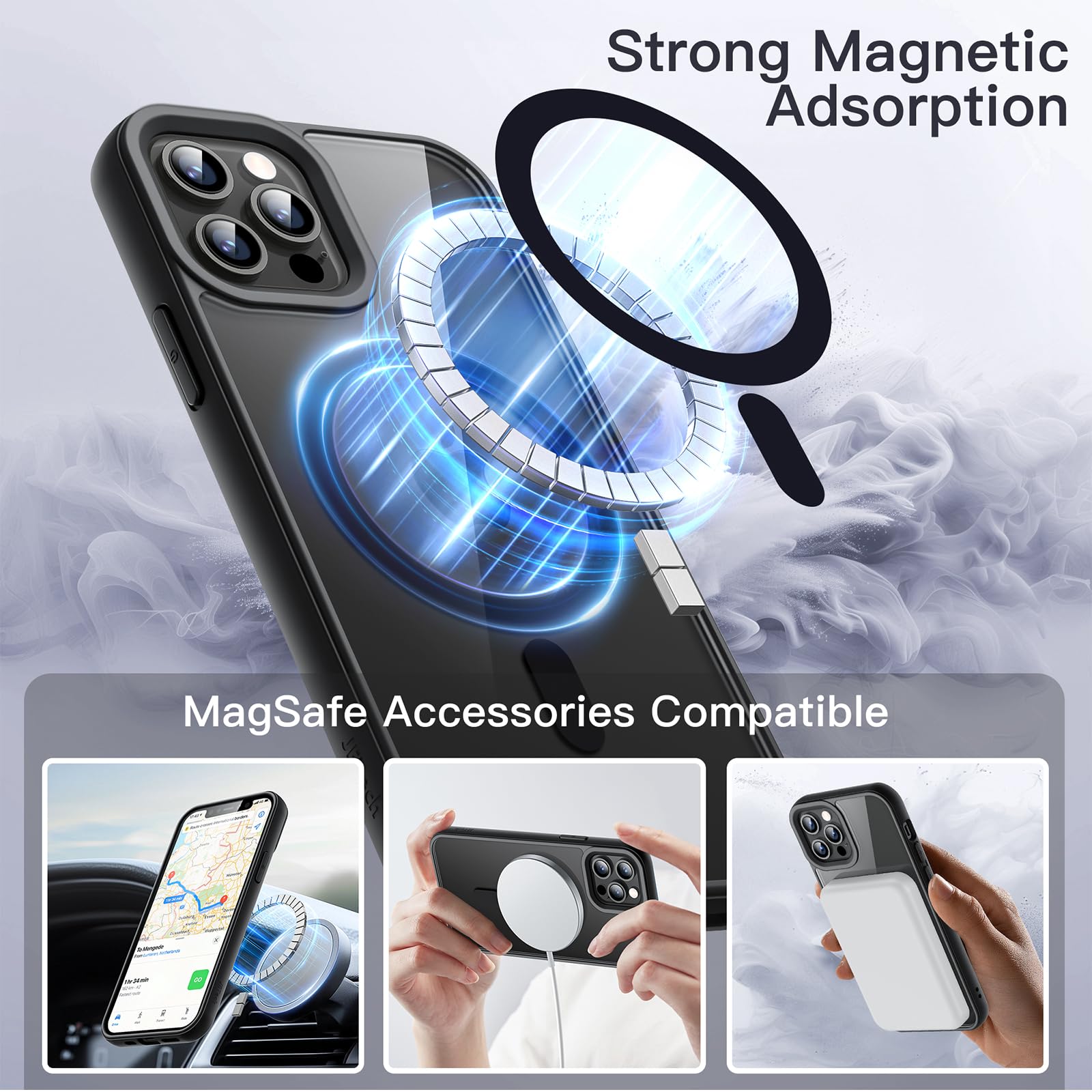 [Strong Magnetic Adsorption] The perfectly aligned 38 built-in magnets make wireless charging faster and easier than ever before. Compatible with MagSafe accessories. When it’s time to charge, just keep the case on your phone and snap on your charger