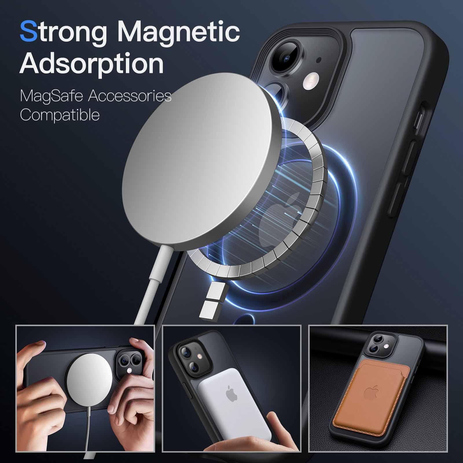 JETech Magnetic Case for iPhone 12 Mini 5.4-Inch Compatible with MagSafe, Translucent Matte Back Slim Shockproof Phone Cover