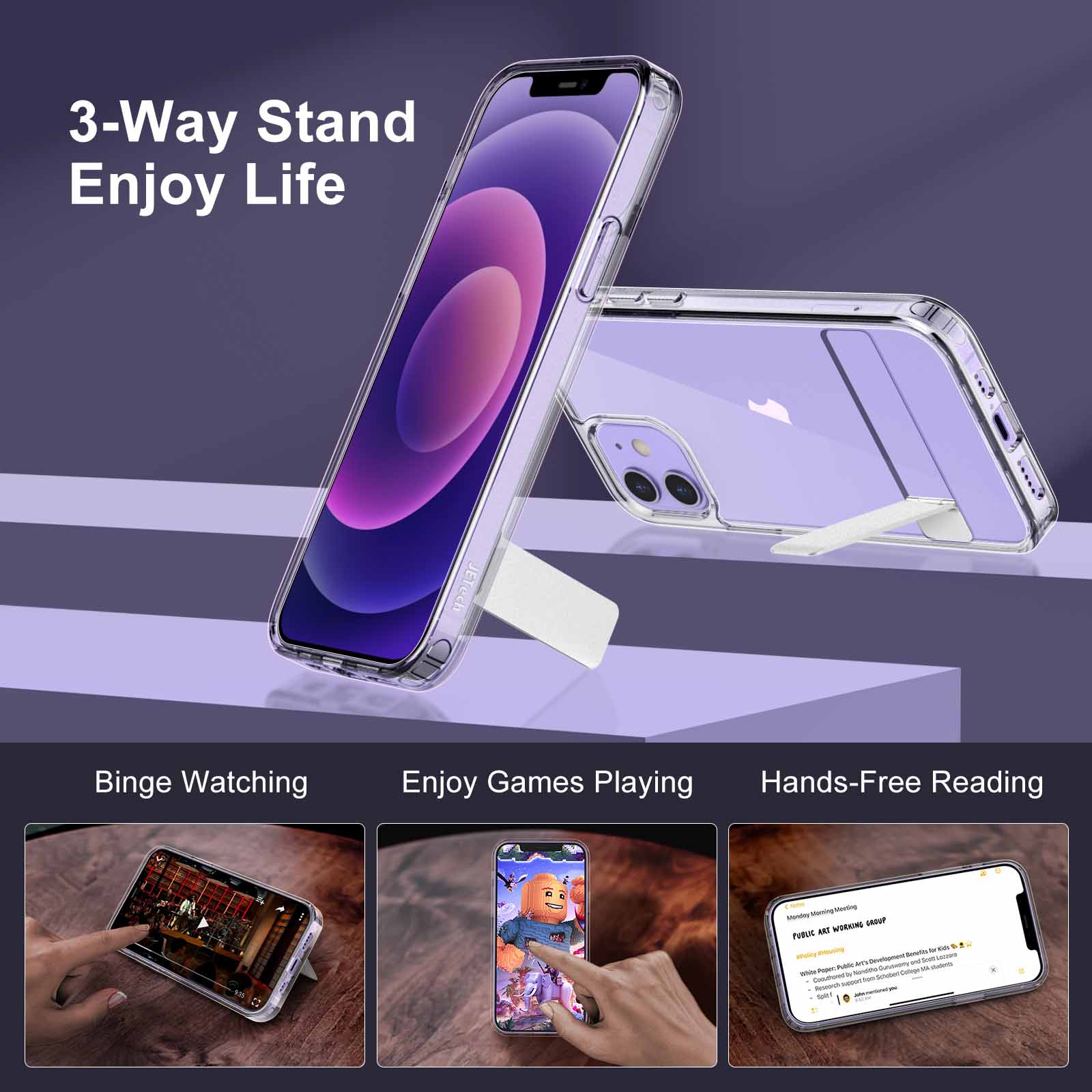 [Free Hands, Enjoy Life] Prop up your phone stably in three ways. The adjustable design gives you an excellent viewing angle anytime and anywhere. Free your hands in enjoying chatting and reading